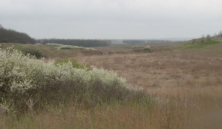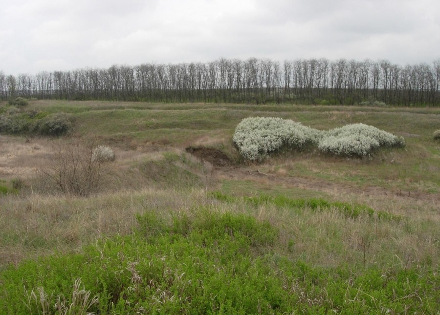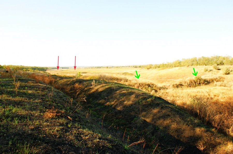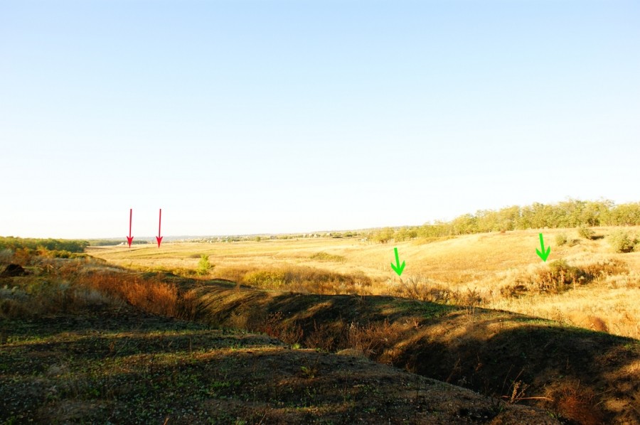 На этом фото видны все три главных элемента укрепрайона. На переднем плане ров, проходящий с севера на юг по левому берегу Темерника. На заднем плане прямой ров, проходящий по берегу впадающего в Темерник ручья и «ломаный» ров, проходящий по вершине холма.