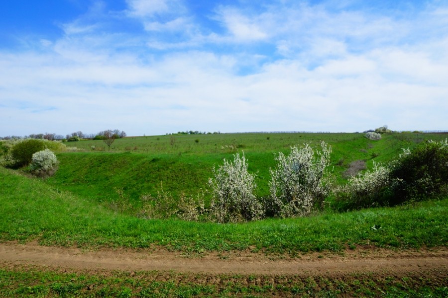 Все началось с моста. Много раз, проходя мимо этого места, я всегда считал эту насыпь обычной дамбой, насыпанной в эпоху всеобщей мелиорации с целью сохранить побольше влаги для колхозных полей. Таких тысячи, прорезанных однажды сильным паводком и заброшенных. Так выглядит мост весной, окруженный островами цветущего терна.