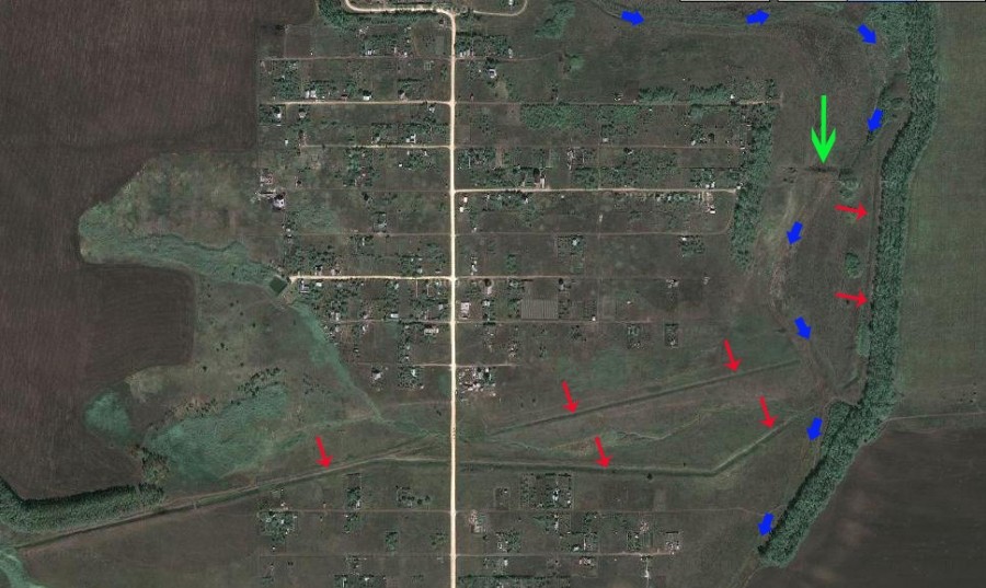 Сразу оговорюсь. Кроме показанных на карте есть еще хорошо сохранившаяся линия окопов и противотанковых рвов по правому берегу Тузлова.