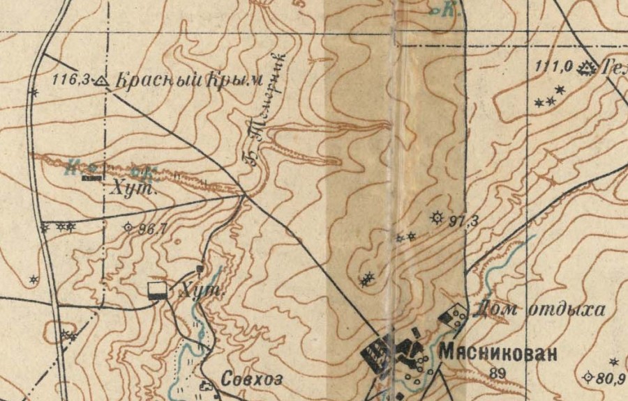 Если смотреть на рисунок русла реки, то это сооружение никак не совпадает с дорогой на Мясниковань, вряд ли картографы могли так ошибиться, дорога проходила южнее. P.S. И не обязательно, что там был мост...