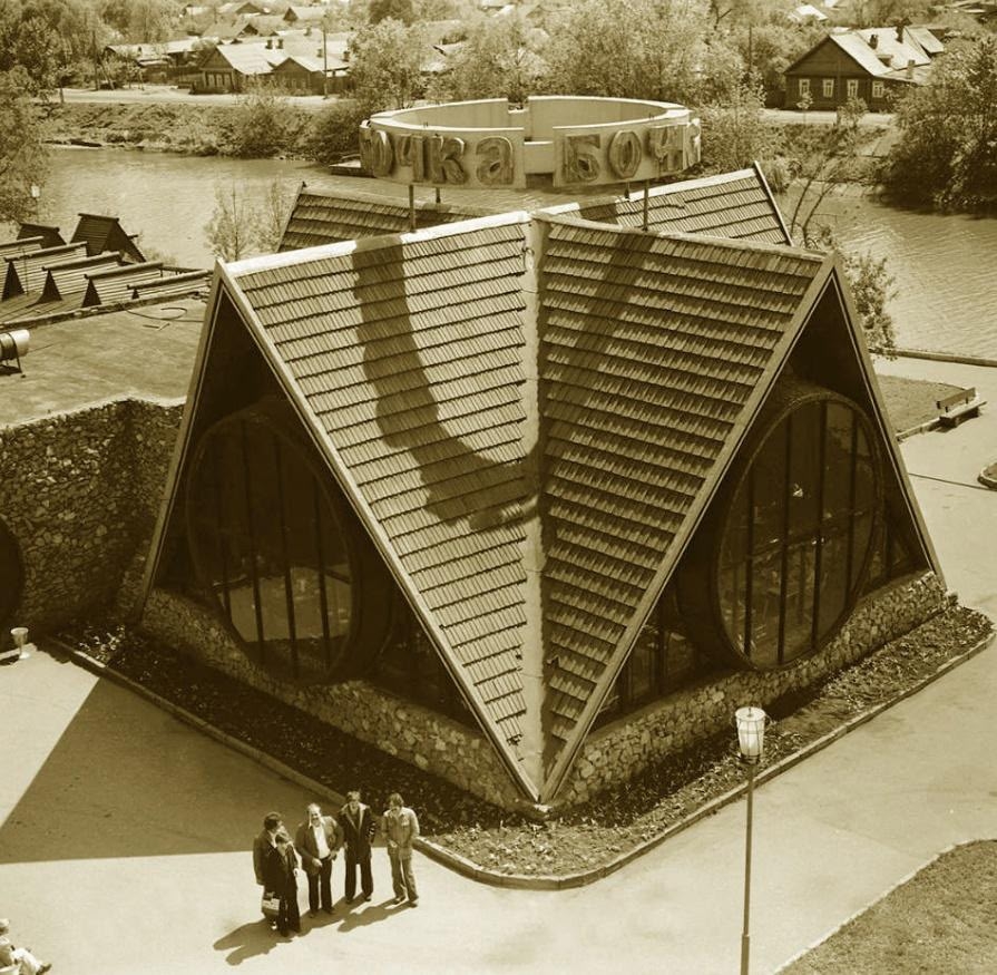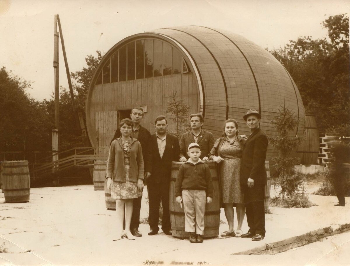 А вы помните бар в виде бочки на площади перед вокзалом Сельмаш? Он стоял в 60-х. Я его помню, но смутно. Это фото из Зеленодолска и Нальчика. У нас был подобный, но фото не сохранилось