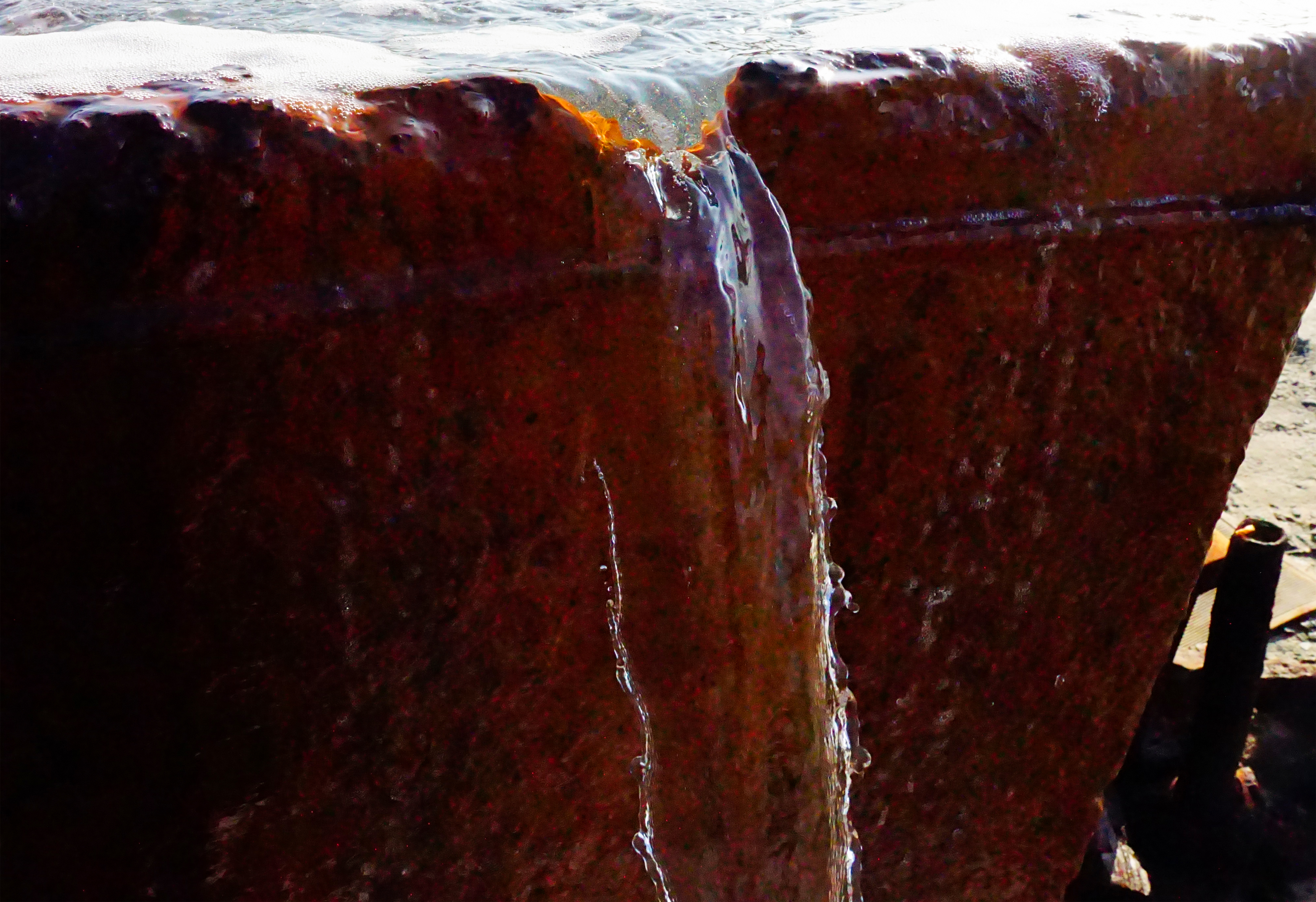 Когда-то геологи пробурили здесь скважину, и из нее под напором пошла теплая, градусов 25, железистая и насыщенная газами вода. Что здесь искали геологи не знаю, но думаю, что воду для баз отдыха. Вода пошла, да не та. Потом над скважиной поставили круглую бетонную купель, которую позже заменили на вытянутую, восьмигранную, более удобную для купания. Впрочем уверен, что купели специально никто не делал, а приспособил под них подходящие бетонные конструкции.