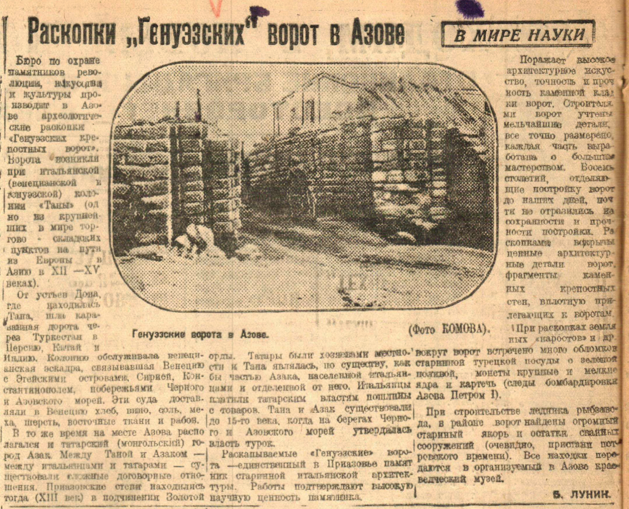 В одном из номеров краевой газеты "Молот" за 1934 г. нашел это фото и заметку о Генуэзских воротах - остатках средневековой крепости основанной выходцами из города-государства Генуя.