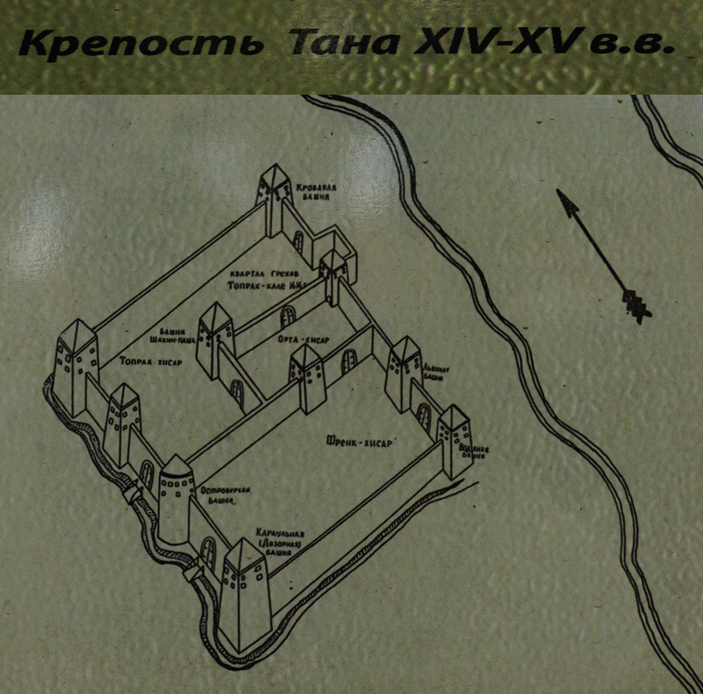 Ну, это, общепринятая версия))) выдвинутая еще Волковым (я лишь ее уточнил, и каждую линию на схеме я могу обьяснить), и поддерживаемая Масловским. Почитайте, если интересно http://stepnoy-sledopyt.narod.ru/history/azov/azov.htm и всю литературу в конце. Уверяю Вас, что сейчас вопросом оборонительных сооружений итальянских факторий никто не занимается и особо не интересуется. Даже сохранные раскопы проводятся очень редко под эгидой Водоканала. Масловского более занимает городище вне крепости, это и понятно, площадь и количество раскопов больше и естественно больше подъемного материала. Больше материала - больше понимания. Да и в крепости стратиграфия как в миксере.