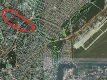 Где-то в районе нижней точки современной улицы Курчатова или чуть выше, на Алеутской.