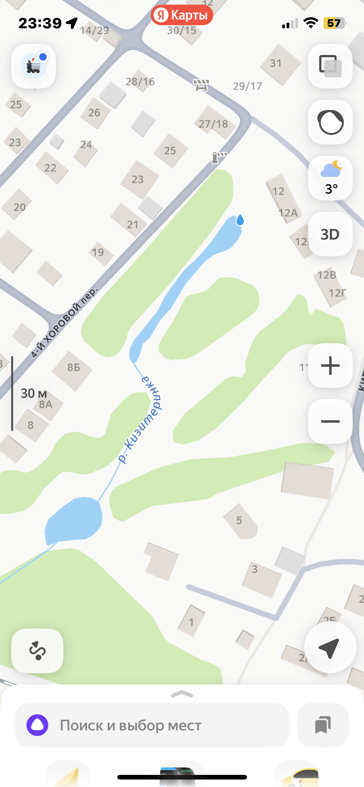 Яндекс-карты, вроде бы, показывают исток «западной» Кизитеринки чуть восточнее 4-й Хоровой улицы.