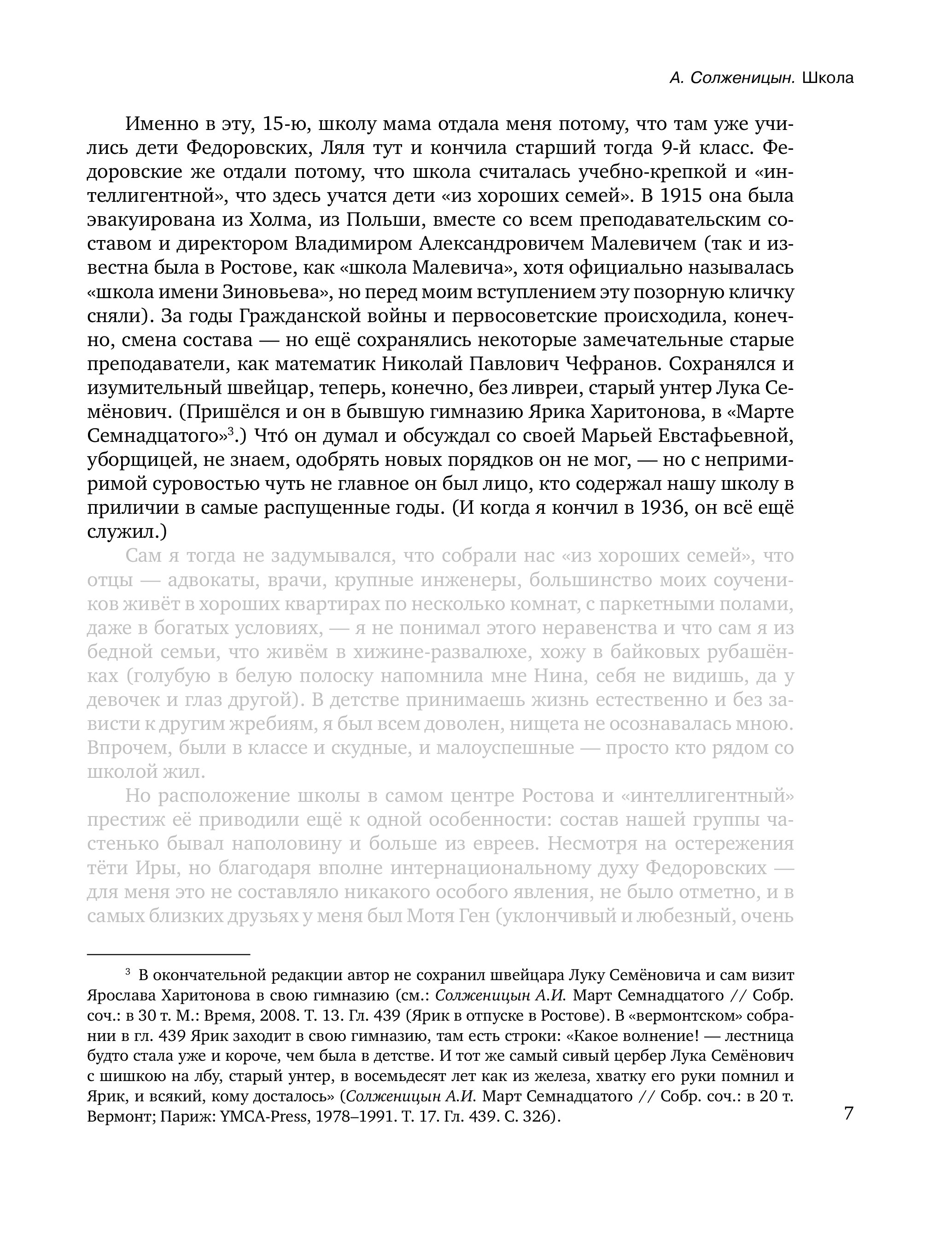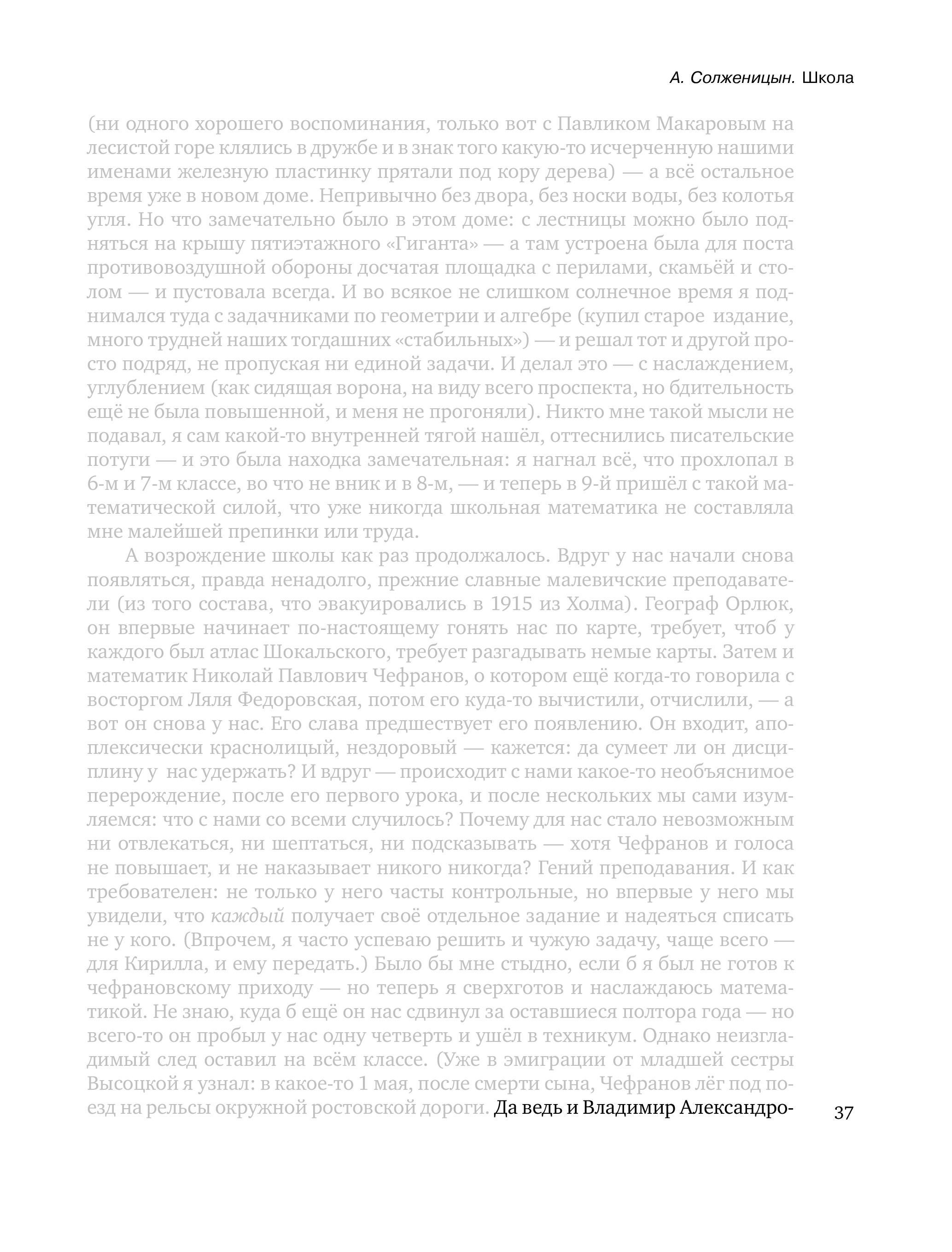 В начале 7-го класса я вёл себя и дальше так же: в несвойственном мне и совсем не радостном мне озорстве. Свободный в математике, я на ней особенно себя плохо вёл, и Борис Ульянович Березовский всё записывал меня и Кагана в классный журнал (графа - плохое поведение). А уроки математики были сдвоенные - так я и звал ребят уходить с математики гонять в футбол - сразу два урока. И все мальчишки уходили, оставались на уроке один-два примерных, Игорь Бессарабов, - Борис Ульянович вздыхал облегчённо и вёл два урока с девочками. Но не доглядели мы, не додумали, что в этом самом сентябре издан был указ о праве директоров школ исключать за хулиганство сроком до одного года и без права поступления в другие школы - первое сталинское опоминание спасти школу, гибнущую от революционных экспериментов. И А.С. Бершадский драматически довёл этот указ до нас: вошёл в наш 7-й «а» класс (тогда по школе старший, так что был резонанс на всю школу) с нашим классным журналом, прочёл: вот, Солженицын записан 7 раз, Каган 6, Ген 5, хотя год только начался, - так все трое исключаются по новому указу на год, без права поступления. Соберите книги, выходите.