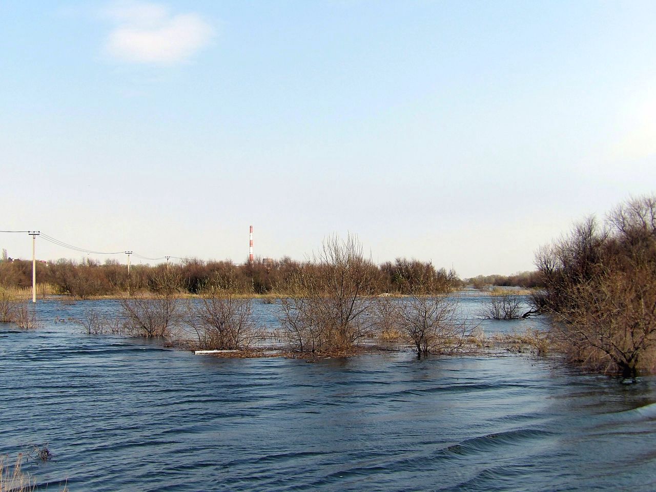 На фото ветровой паводок 17 апреля 2020 года, район Каратаево