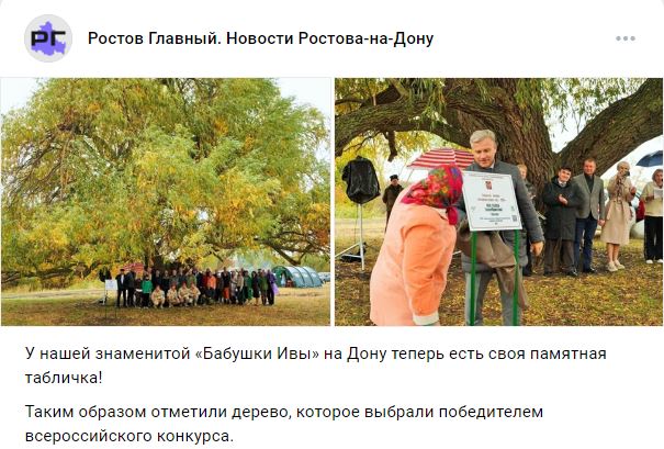 Теперь представьте моё удивление и восторг, когда я обнаружил, что эта ива участвует от Ростовской области в конкурсе «Дерево года».