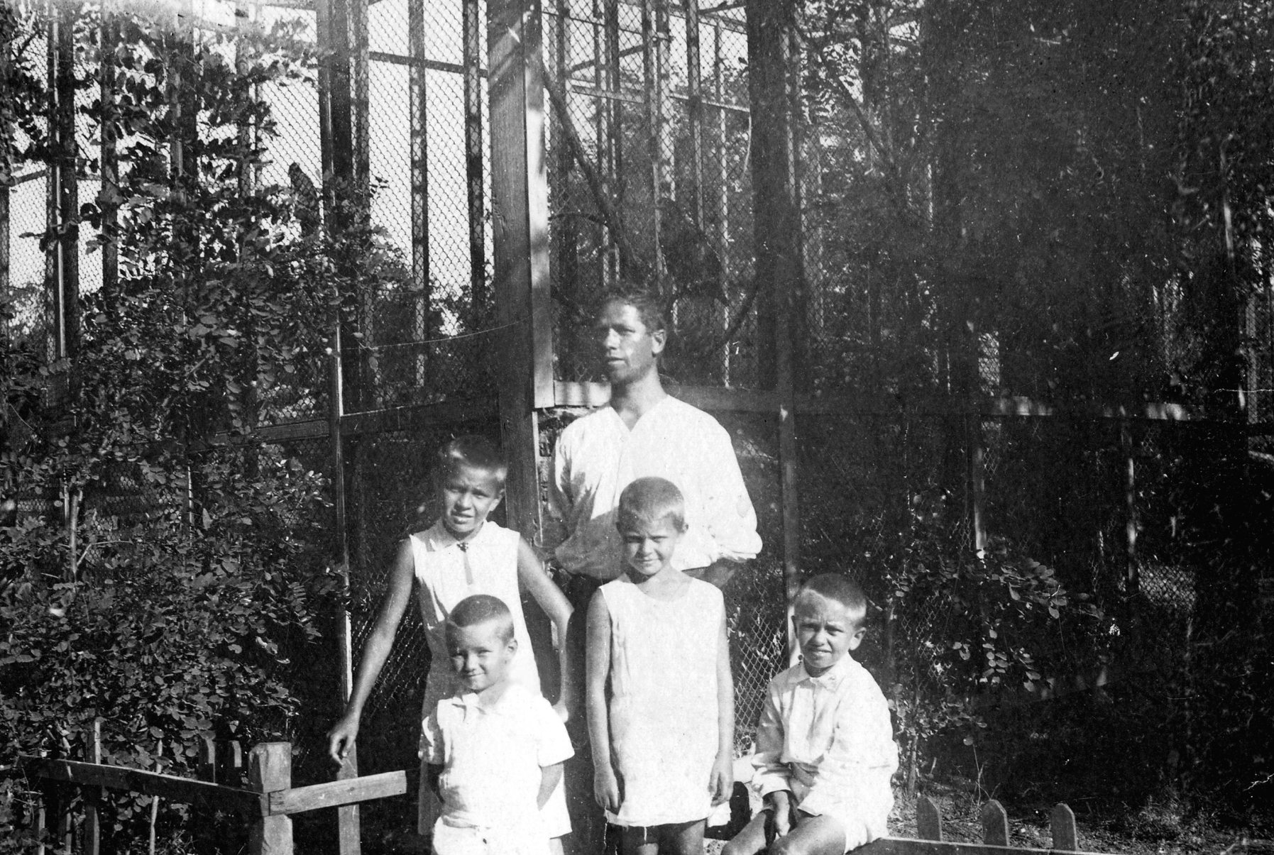 На фотографии моя мама в девятилетнем возрасте справа,слева ее родная сестра, их двоюродные братья и отец братьев. 9 июня 1937 в Ростовском зоопарке у клетки с попугаями.