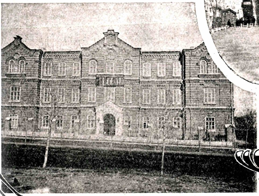 По поводу необычного строения во дворе школы, которое превращено в гараж. А не могут ли это быть остатки домовой церкви Андрея Критского при гимназии? На очень плохом снимке с сайта Собры.ру в правом верхнем углу виднеется что-то подобное.