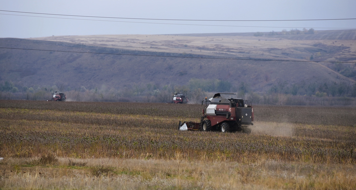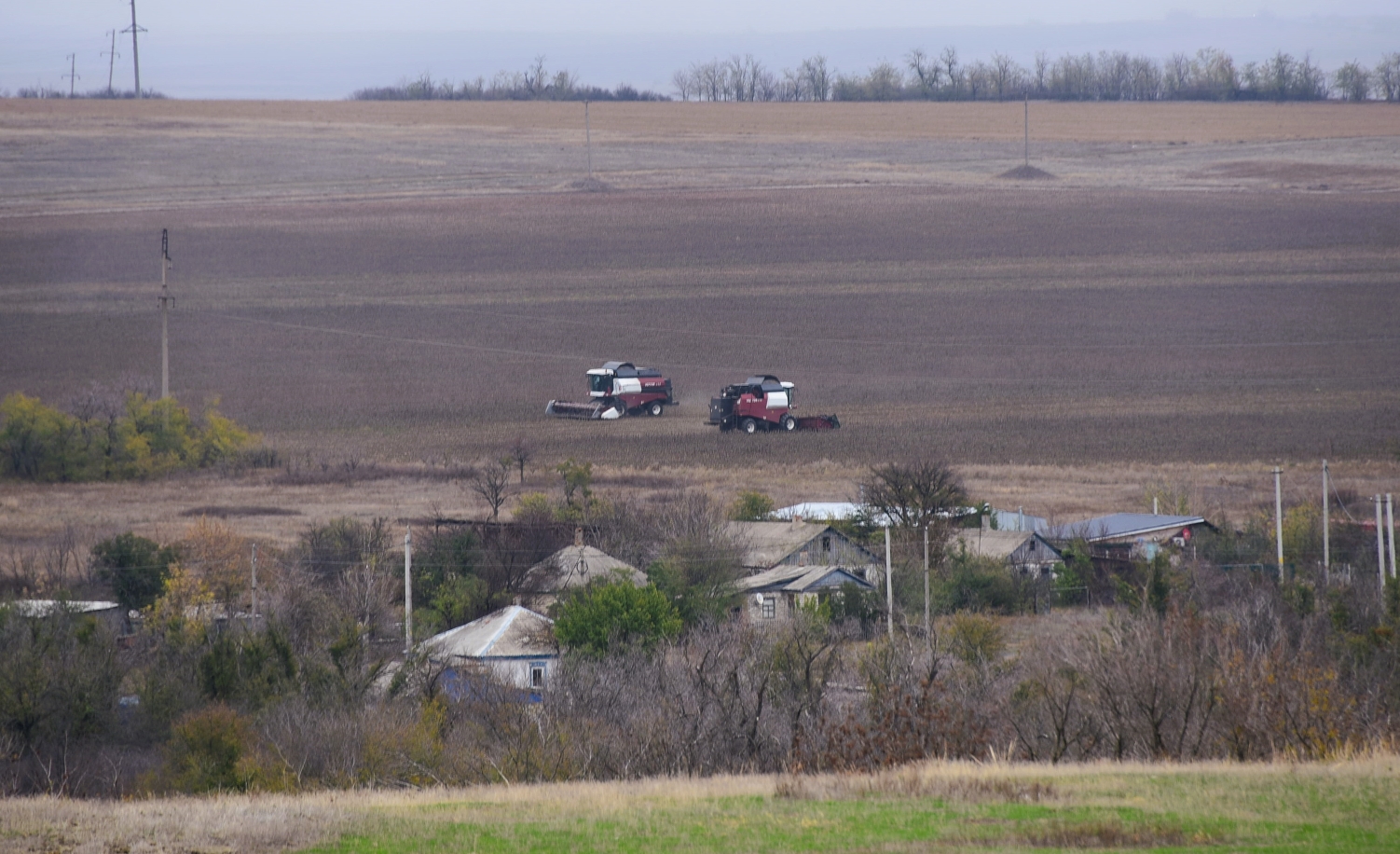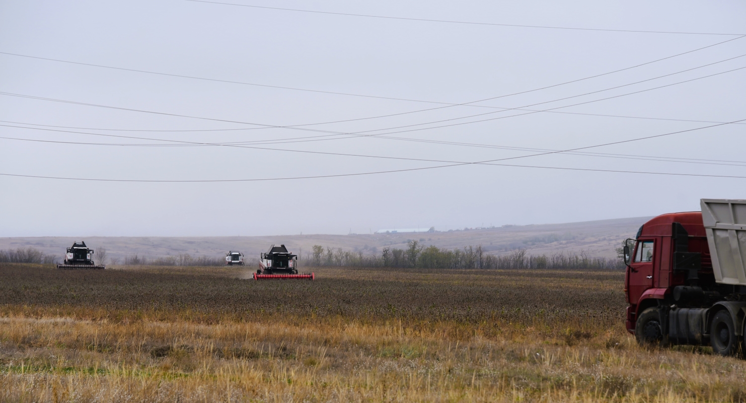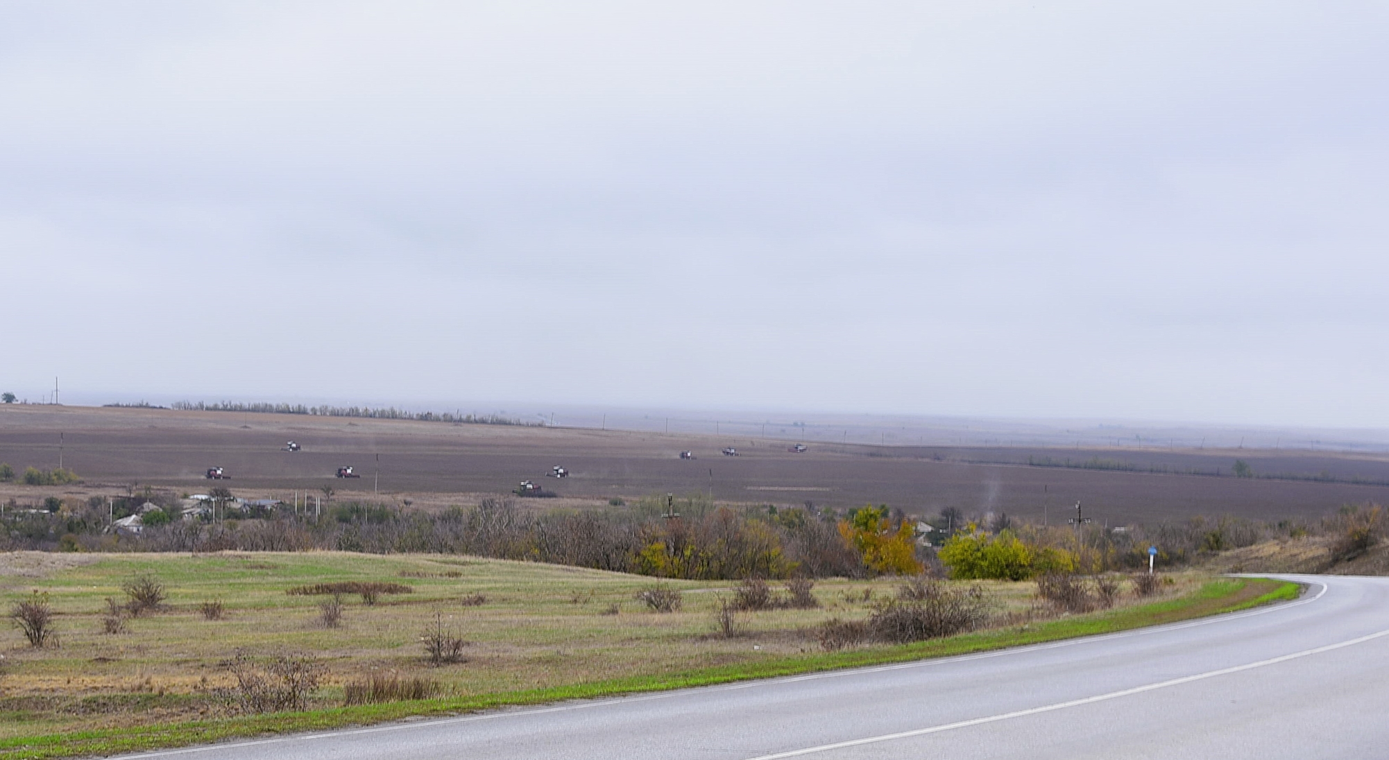 Тем более было приятно увидеть сегодня у Грушевки, массовую уборку подсолнечника. В поле работали 11 комбайнов. Наших комбайнов, Векторов и Акросов.