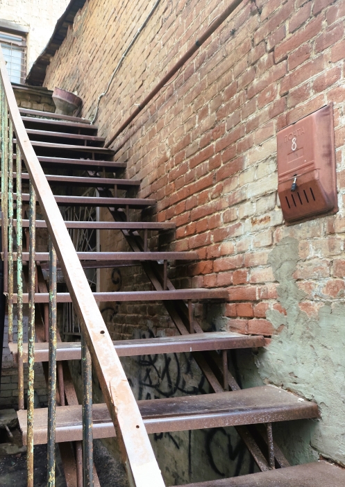 Но на самом деле большая часть этих лестниц и галерей - памятник тяжёлому периоды истории нашей страны. Когда большие квартиры по неволе освобождённые состоятельными жильцами переделывались во множество маленьких квартир. И, естественно, для этих квартир не хватало проектных входов-выходов.