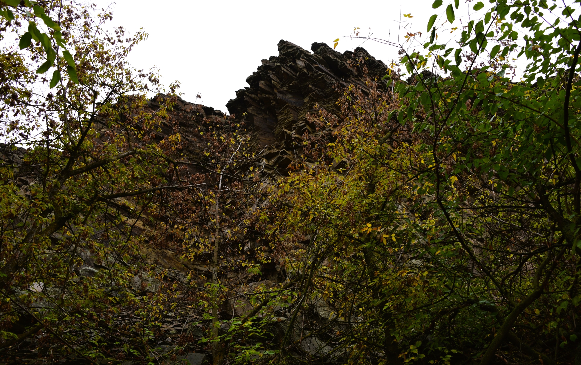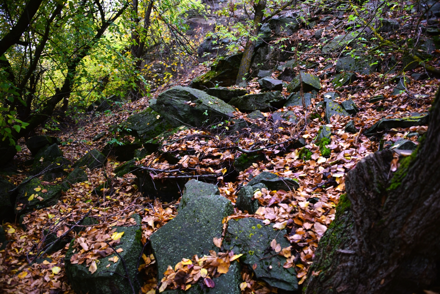 Возвращаюсь мимо каменных гребней в лесу.