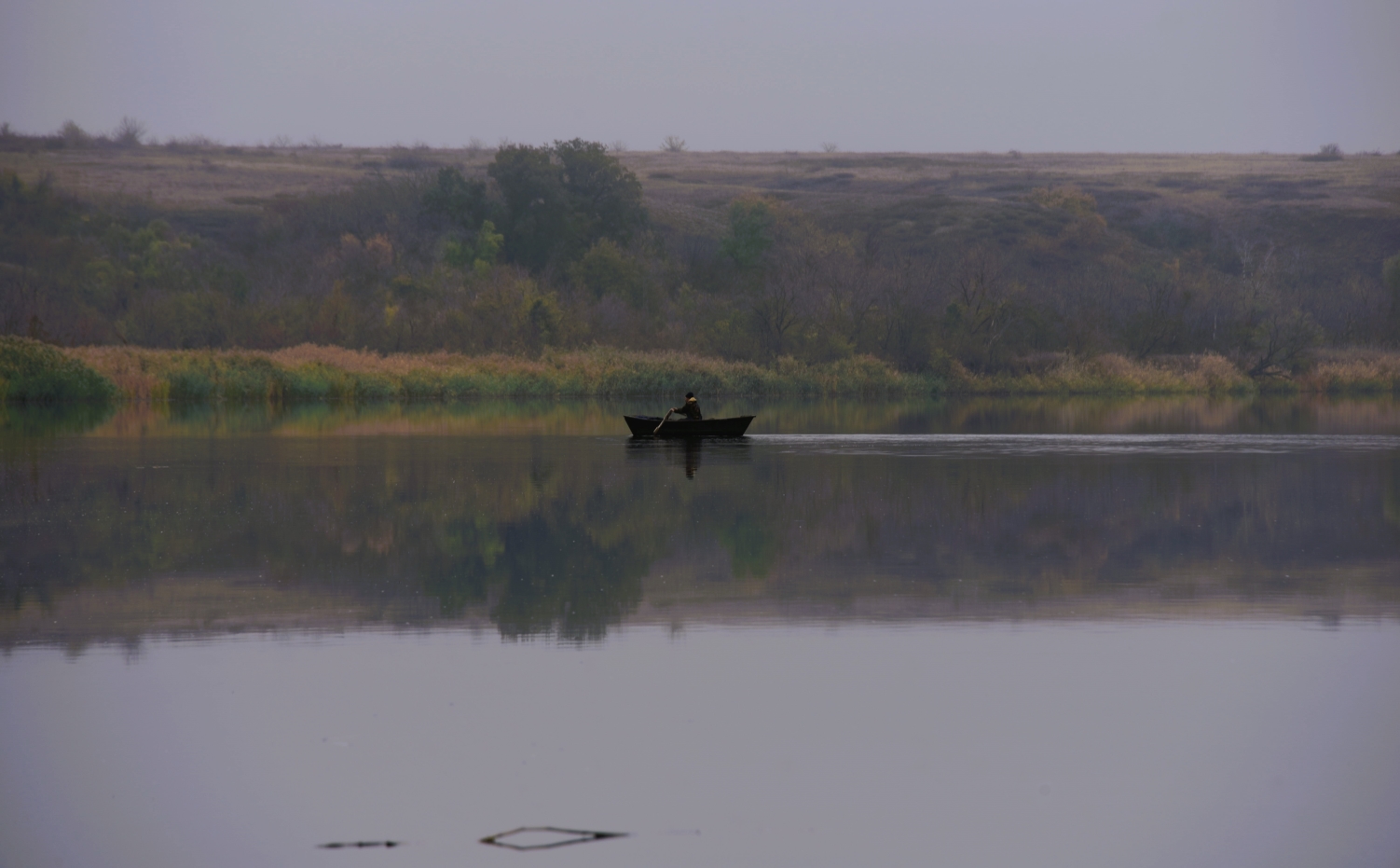 Может быть, он постоянно перевозит кого-то через реку? Интересно, сколько берёт за перевоз?