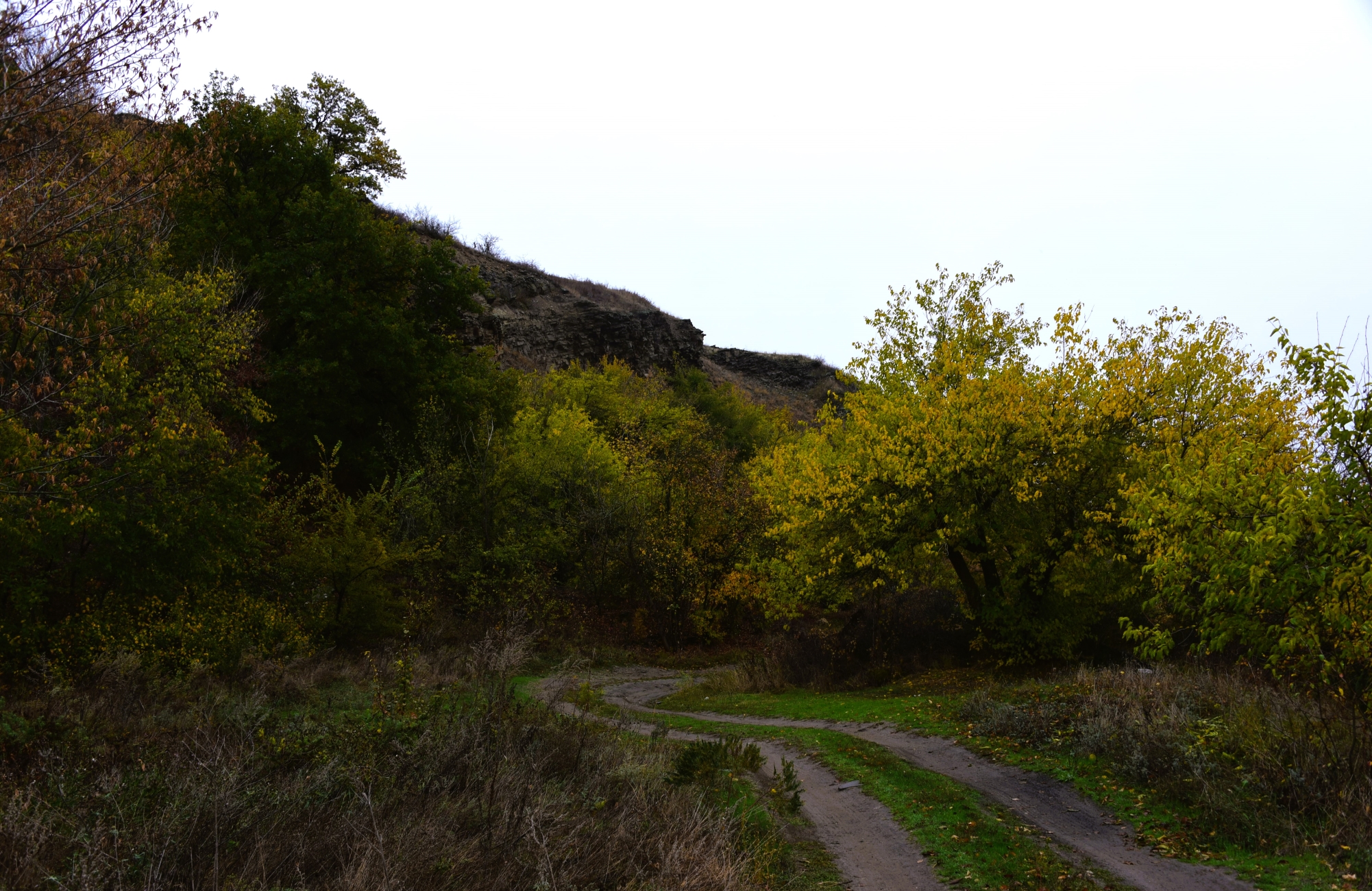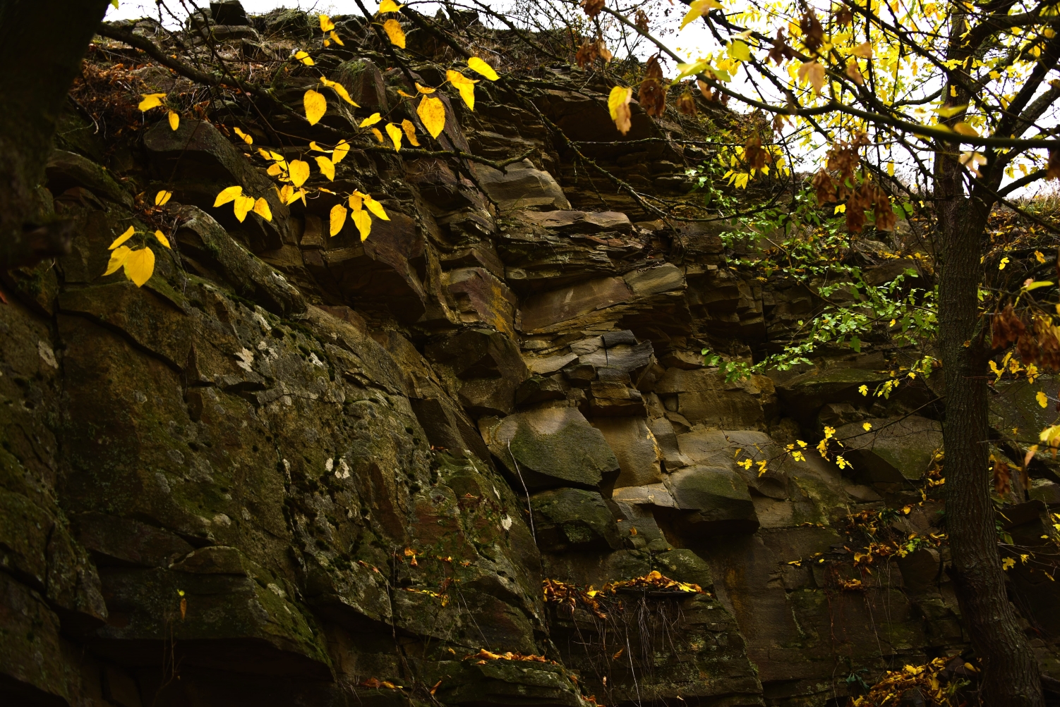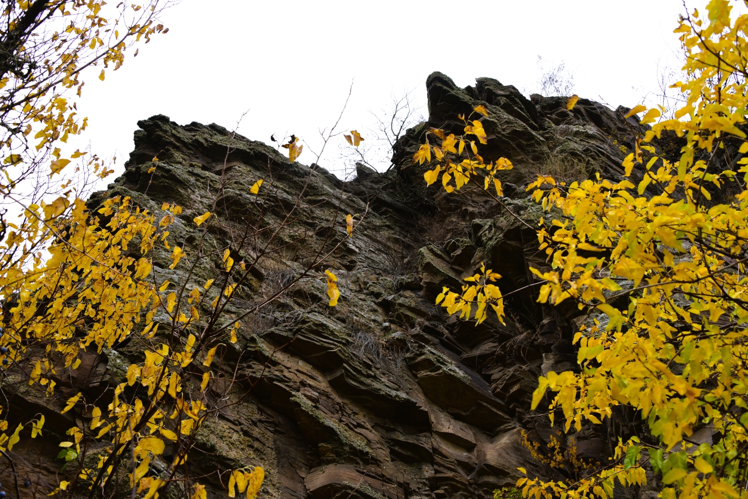 Возвращаюсь под скалами среди жёлтых листьев.