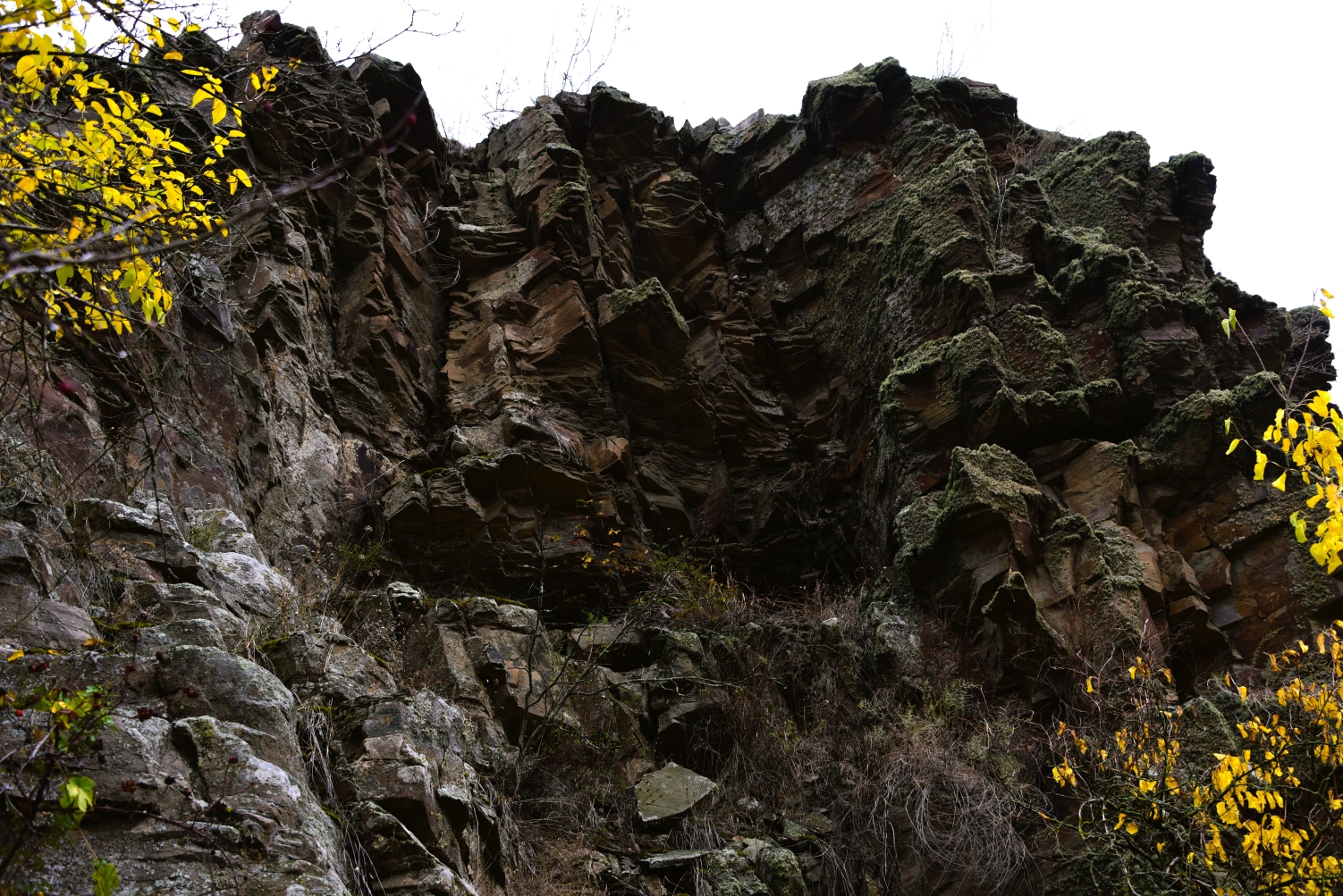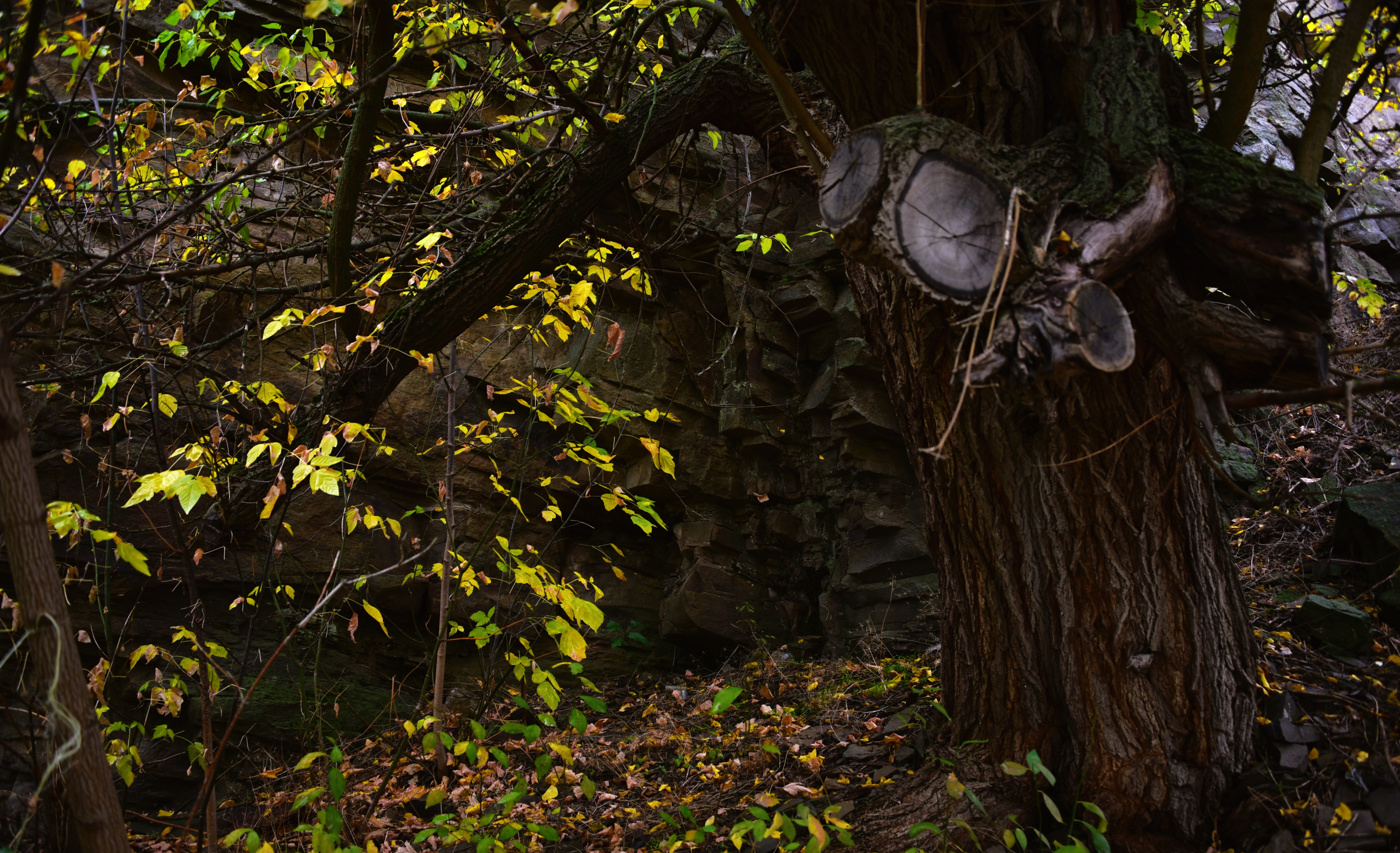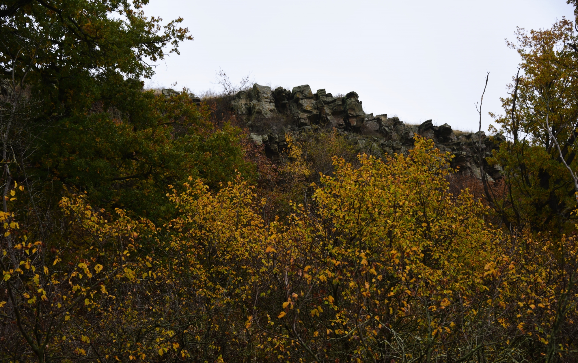 Возвращаюсь под скалами среди жёлтых листьев.