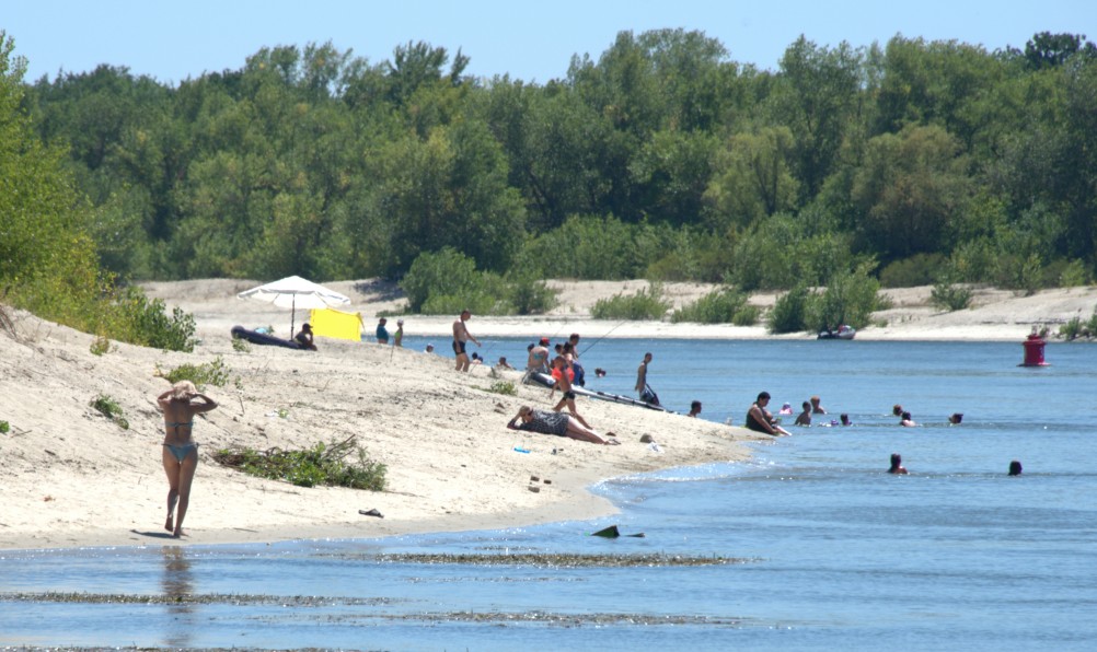 Но, конечно, старое русло будет намного мельче и поэтому теплее. В старицах часто бывают приятные пляжи. Этот пляж обозначен значком на предыдущем снимке. Хорошее место. А главное русло реки на снимке можно распознать по бакену