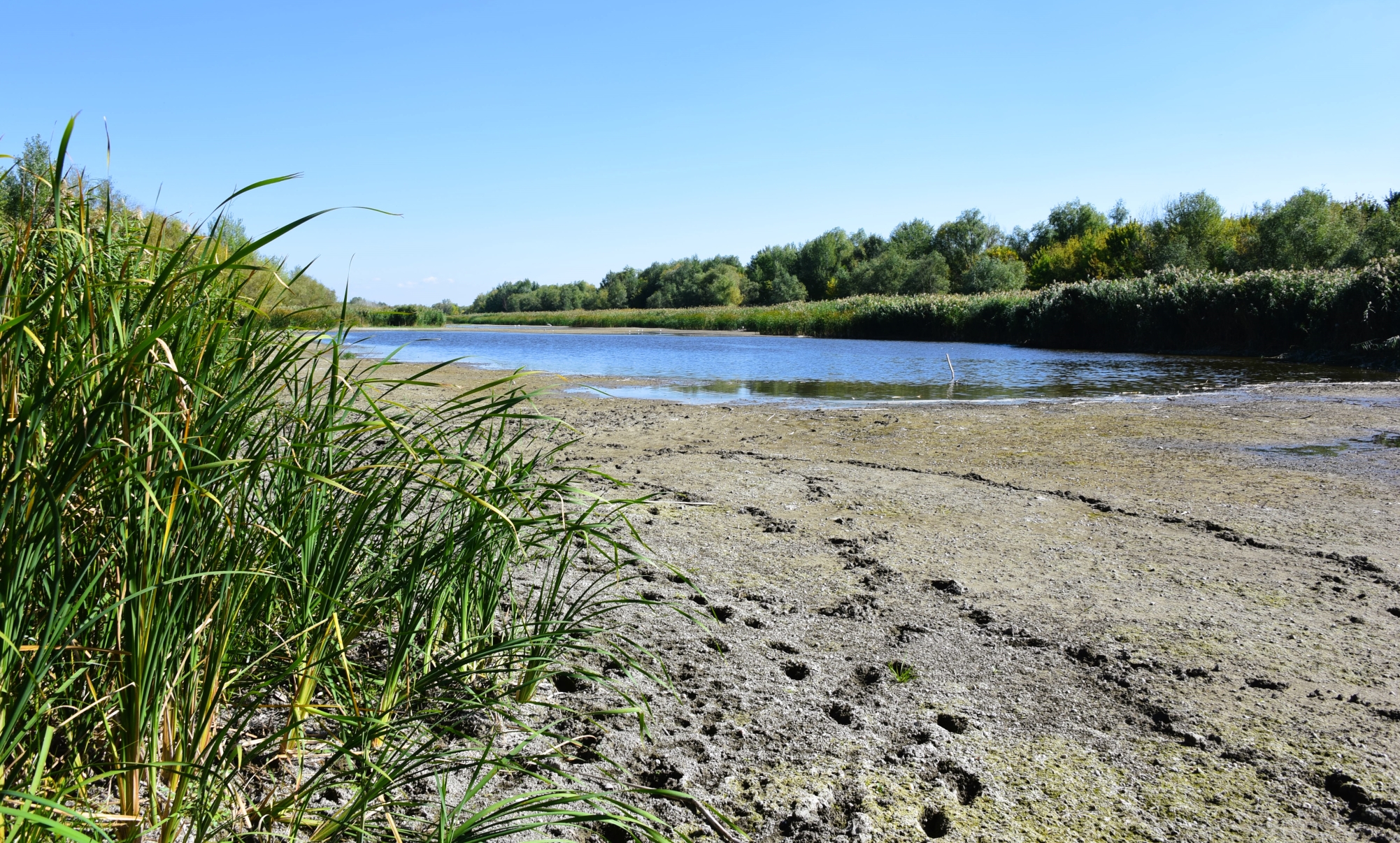 А такой я увидел протоку в этом году. Она пересохла. По углубленному и расширенному руслу вода стремительно стекает к морю, и на протоки её уже не хватает.