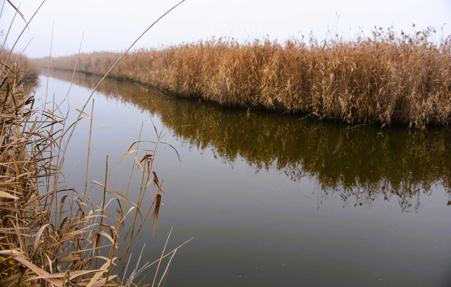 Когда-то широкая старица, теперь тонущая в тростнике.