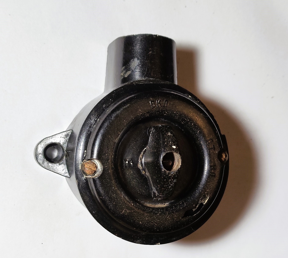 Обратите внимание, в одном месте, карболит из которого сделан выключатель, протёрся насквозь от пальцев людей, включавших и выключавших свет.