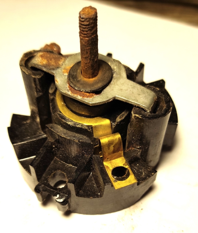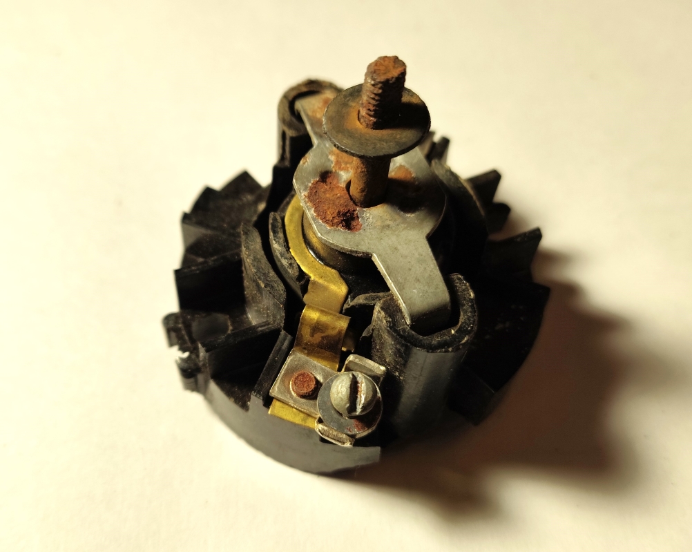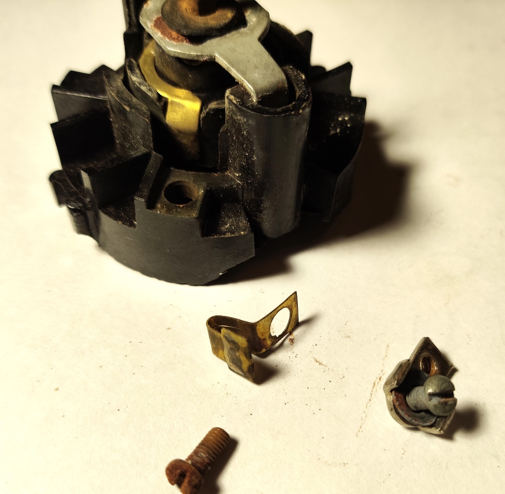 Центральный поворотный контакт оказался не съемным, а один неподвижный контакт, с трудом, с помощью тонкой отвёртки удалось снять.