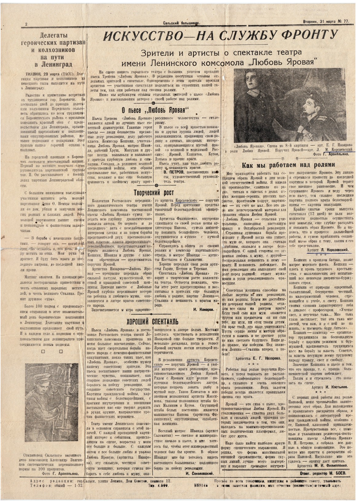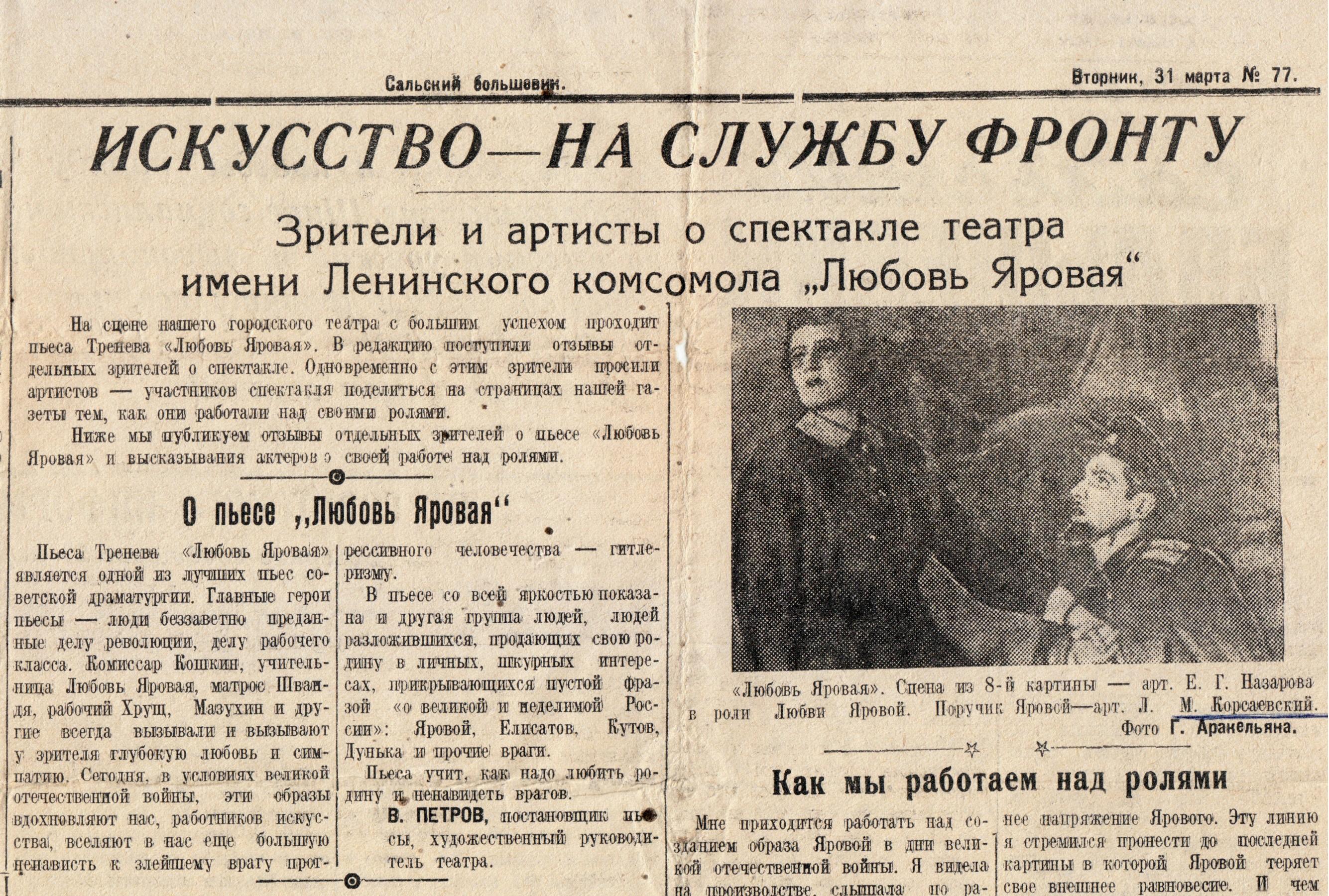 | статья в газете "Сальский большевик" №77 от 31 марта 1942г. | ||