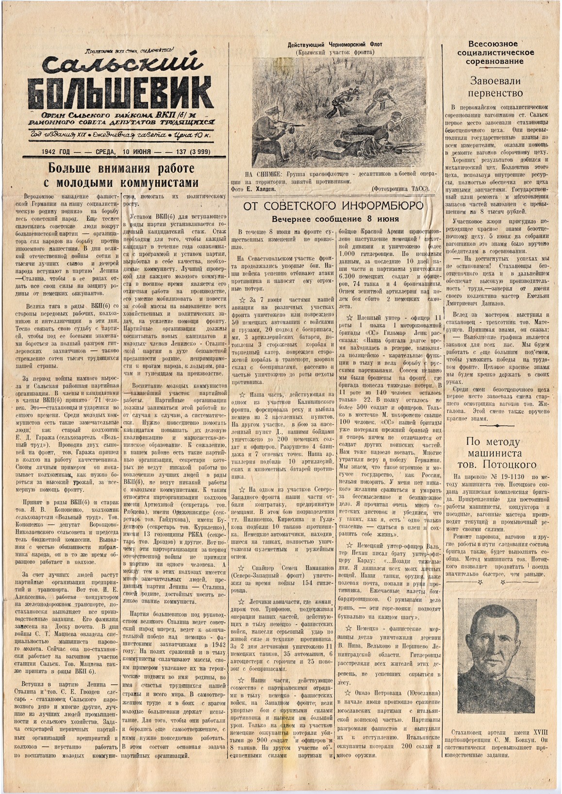 статья в газете "Сальский большевик" №137 от 10 июня 1942г.