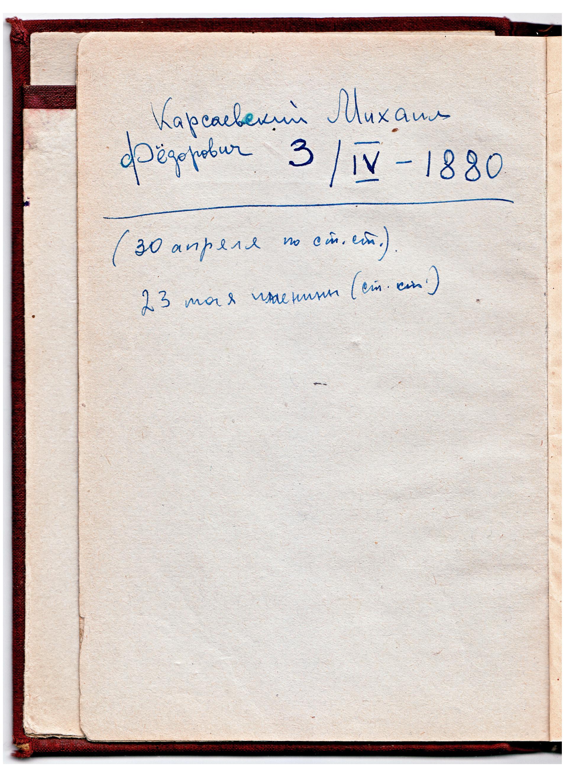 Михаил Фёдорович много читает и, даже, в эти тяжелые дни постоянно покупает книги. Ходить на занятия приходится пешком. Из дневника Карсаевского М.Ф.: