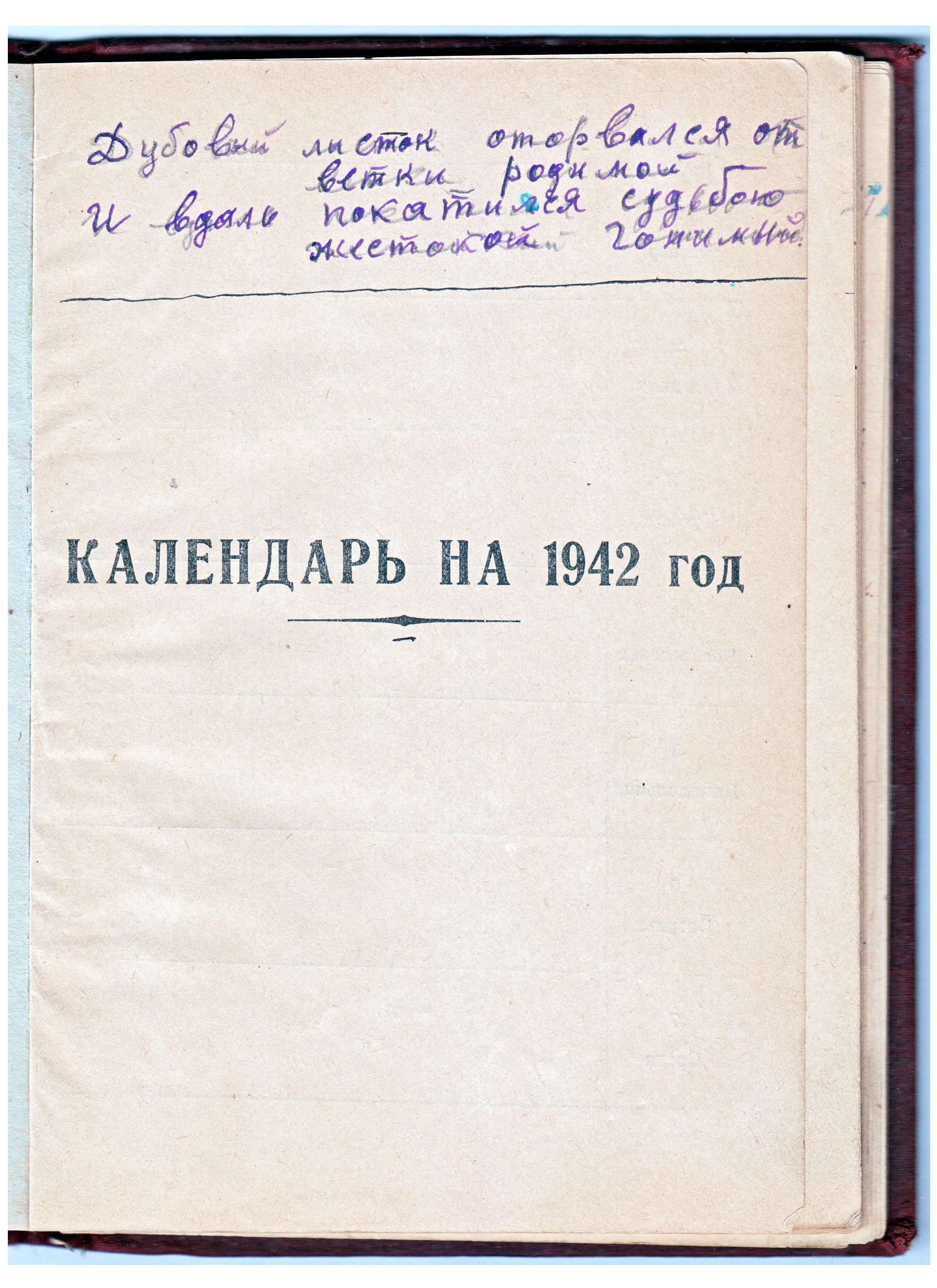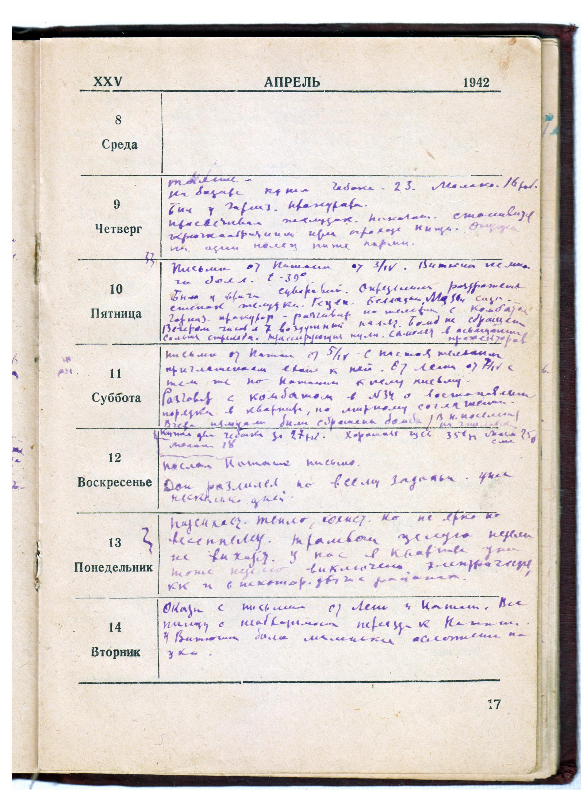 | 09 | июня | 1942: | "...Послано с ним Лёне письмо. По почте Наташе (о переезде)." |