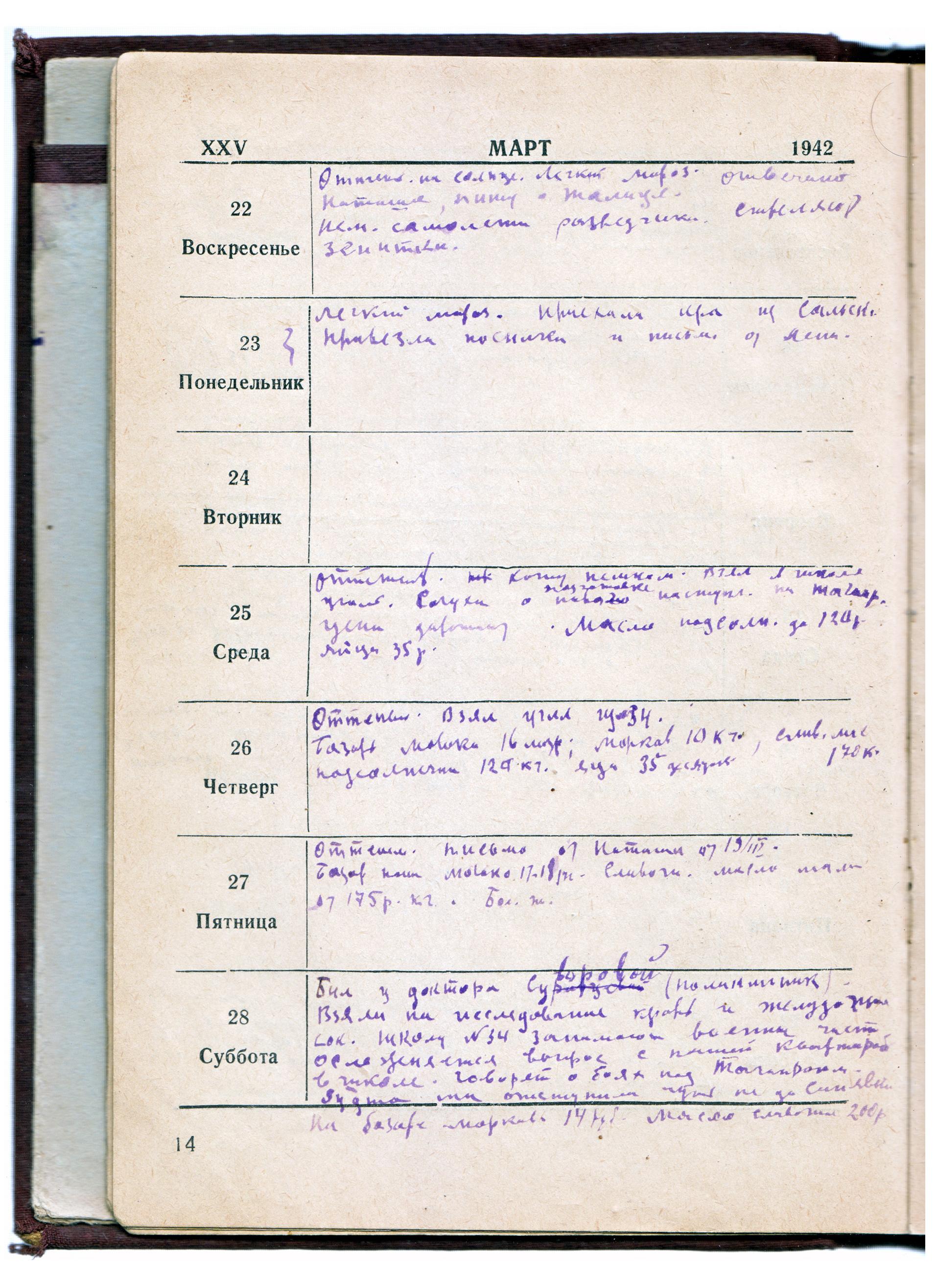 | 25 | марта | 1942: | "...Хожу пешком." |