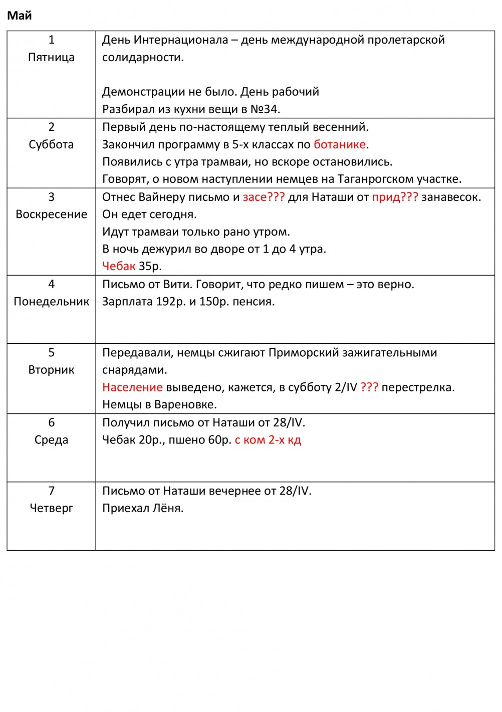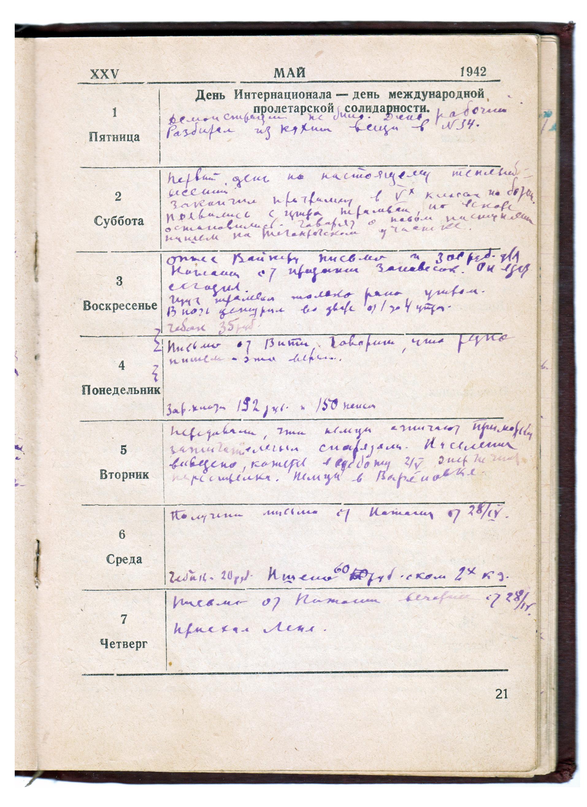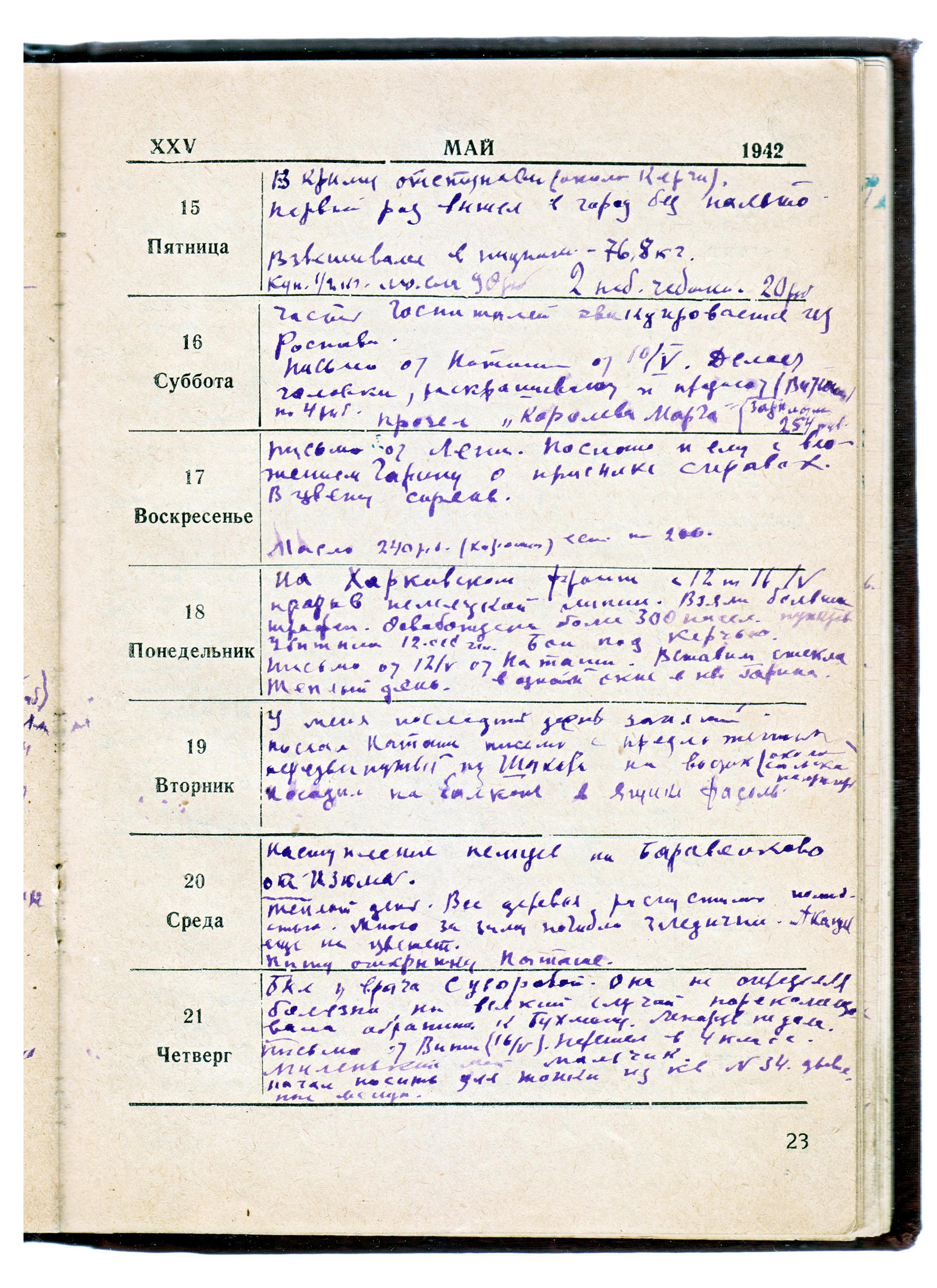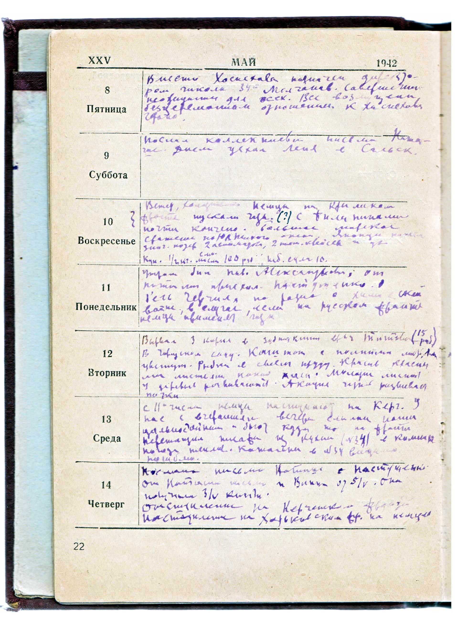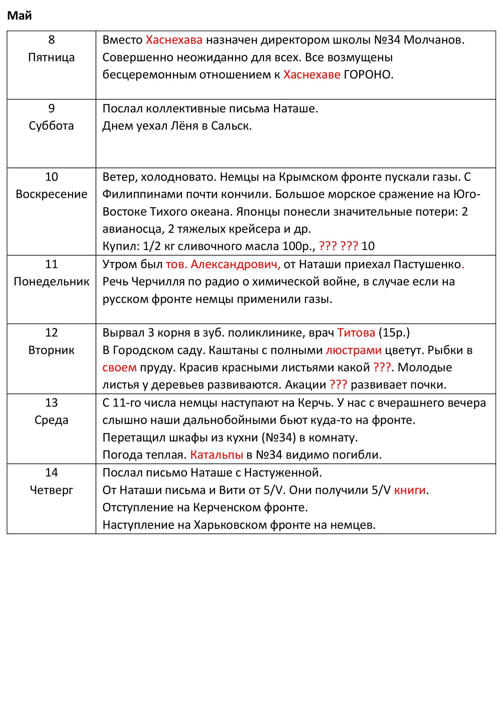 | 19 | мая | 1942: | "…У меня последний день занятий." |