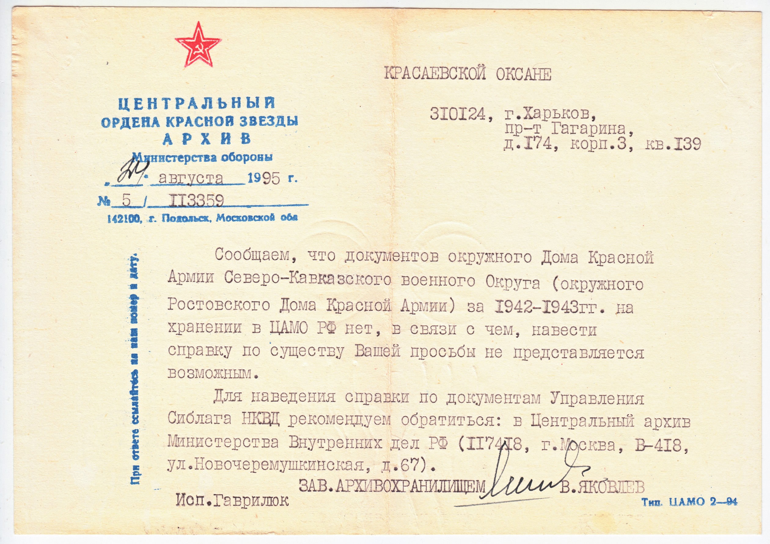 2/I-1942 (Ростов): "Начал работать в школе №10."
