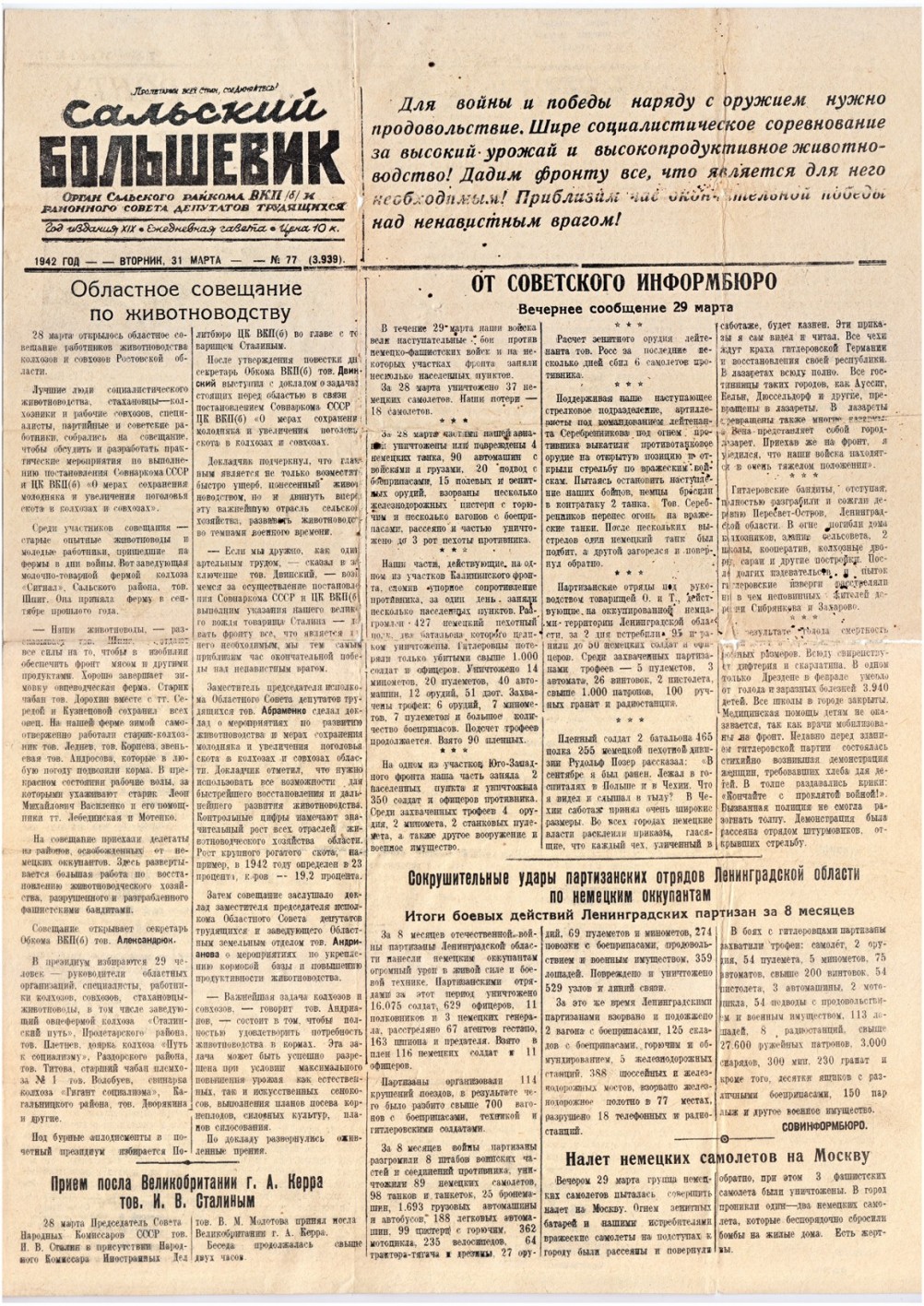 | газета "Сальский большевик" №77 от 31 марта 1942г. | |