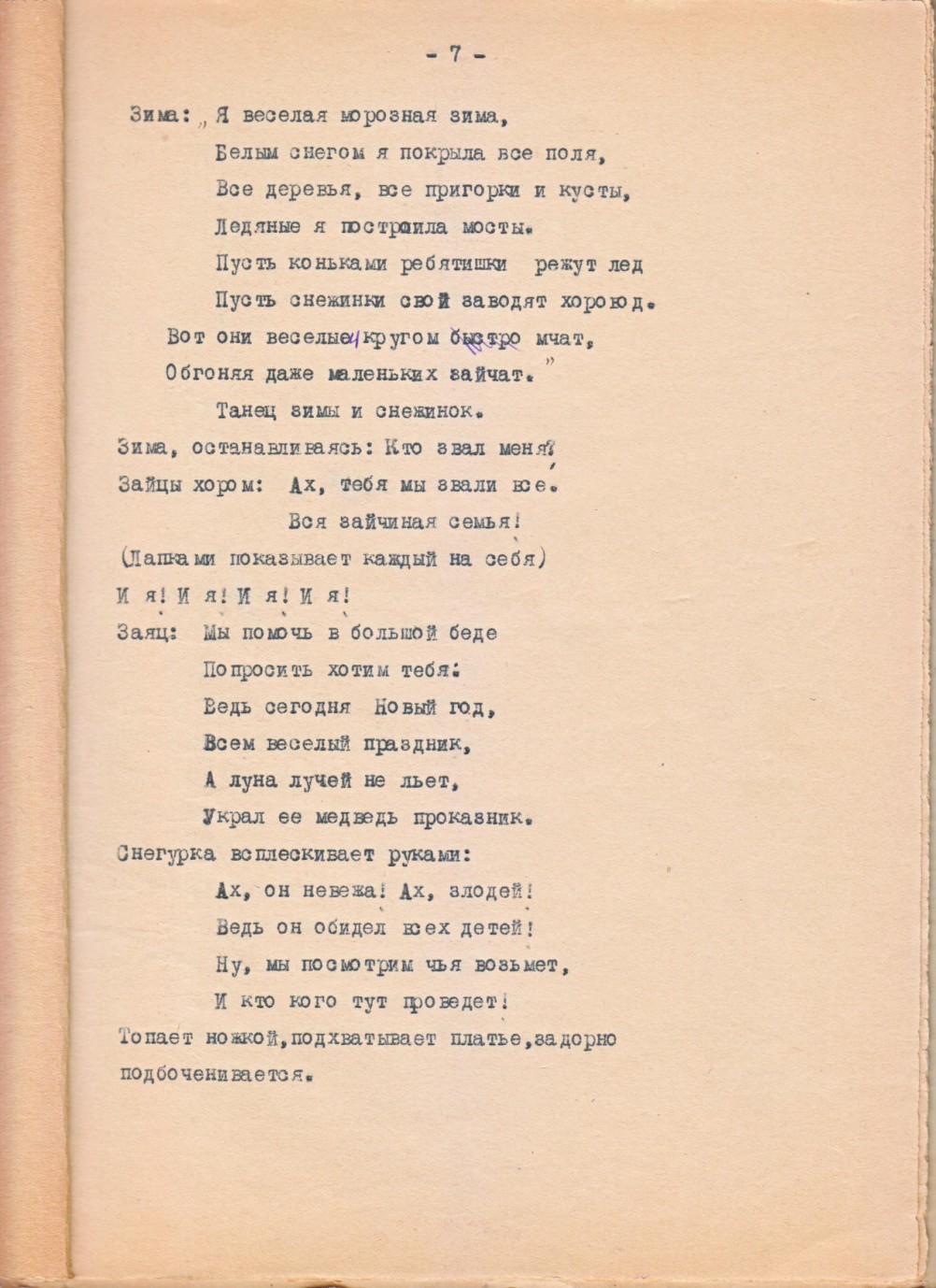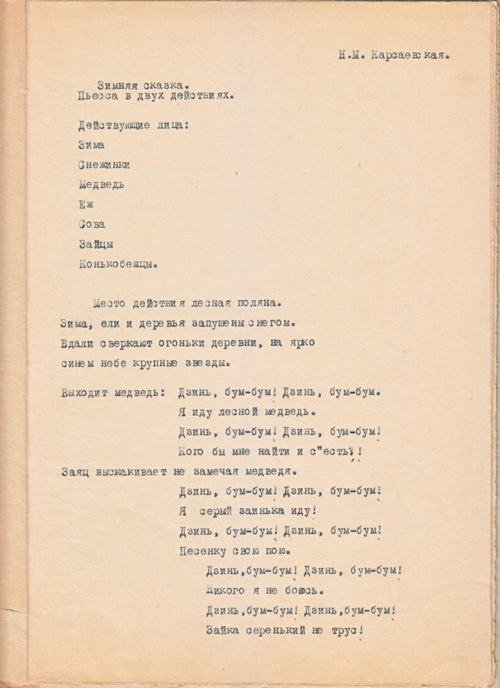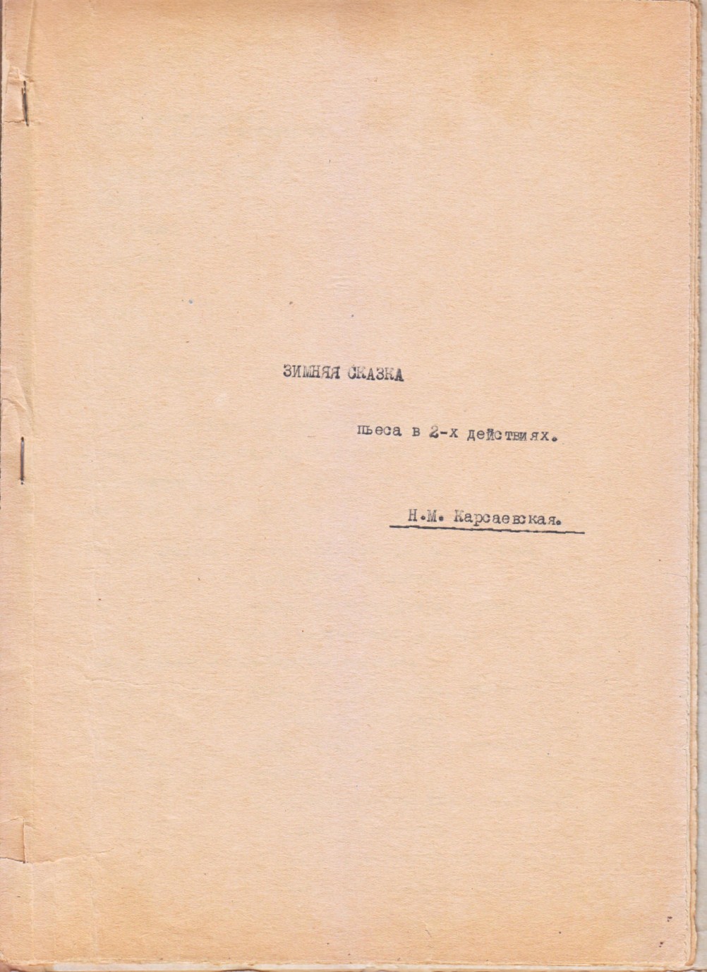 | Талицкий Детский дом. Сценарий к пьесе в 2-х действиях "Зимняя сказка" постановка Н.М. Карсаевской. | |||||