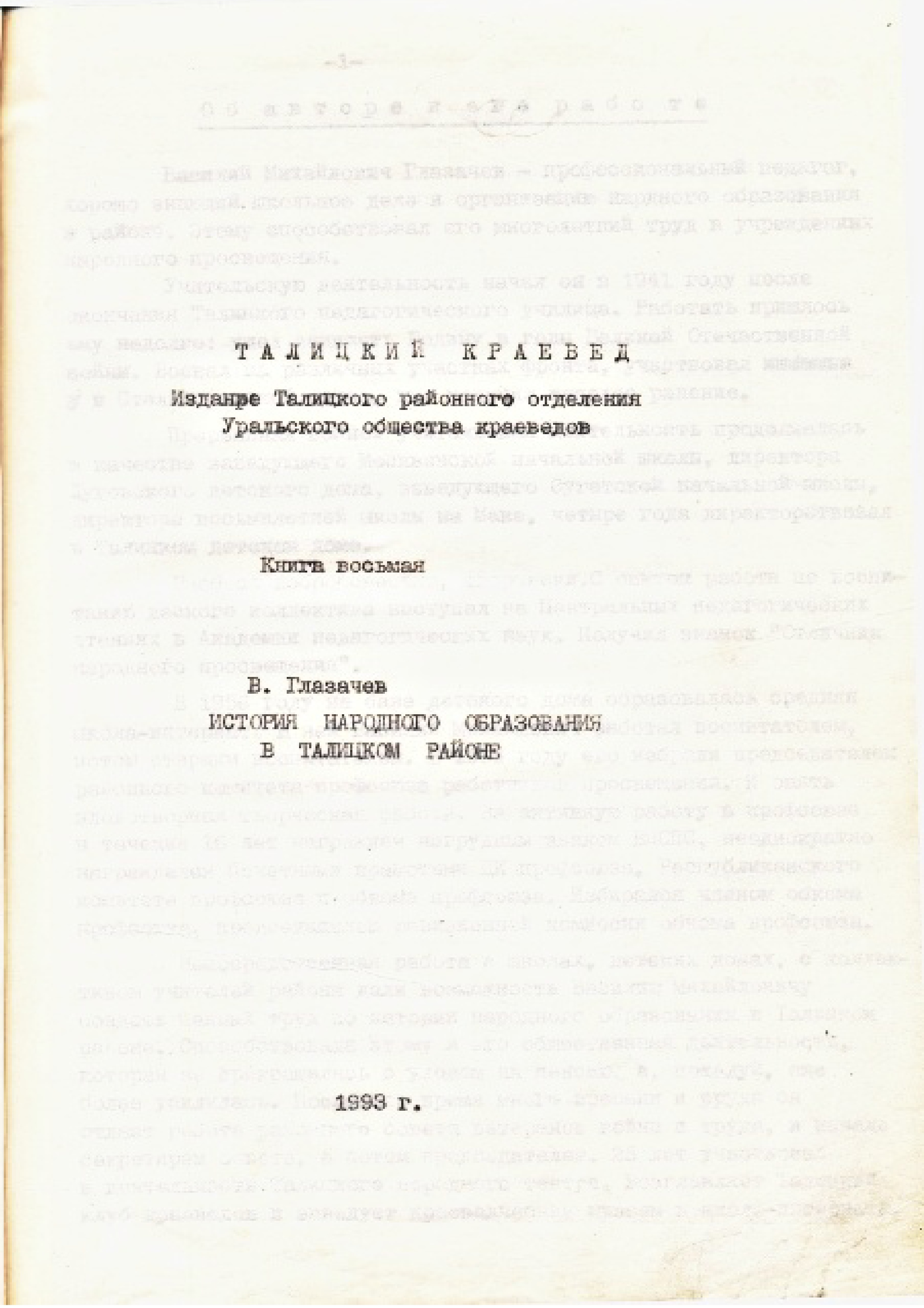| издание Талицкий краевед. Книга восьмая, 1993г. "История народного образования в Талицком районе" | ||