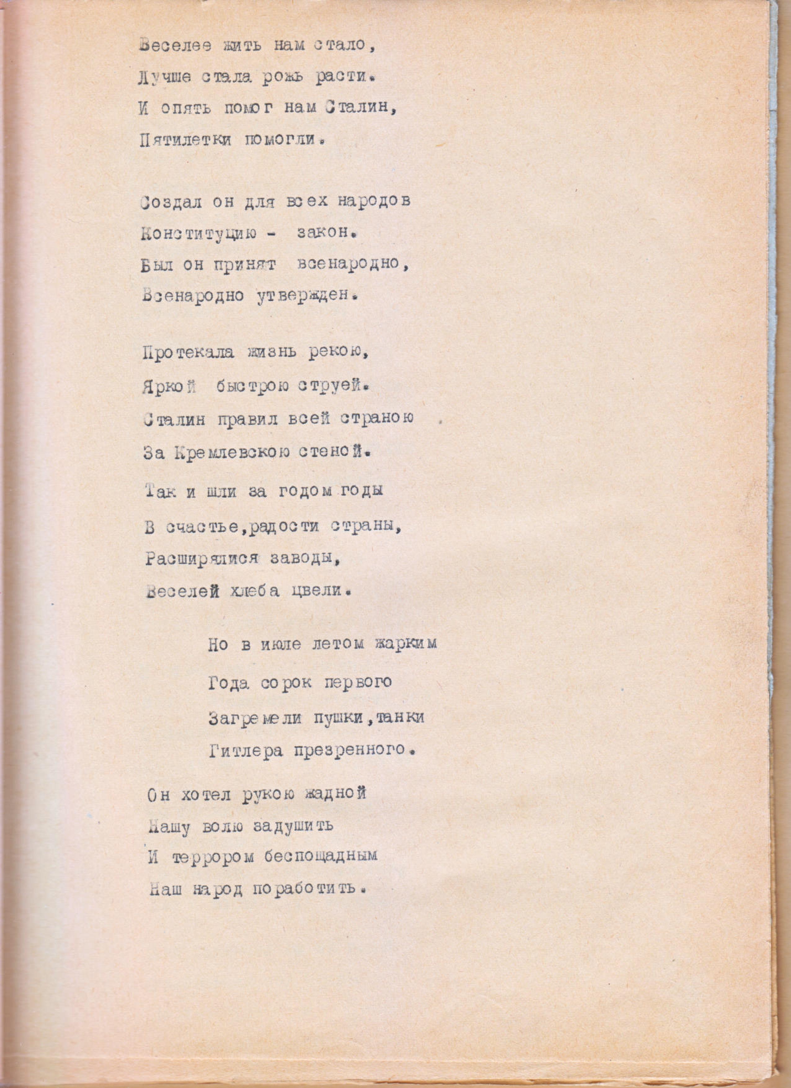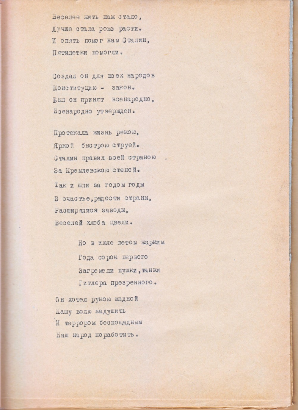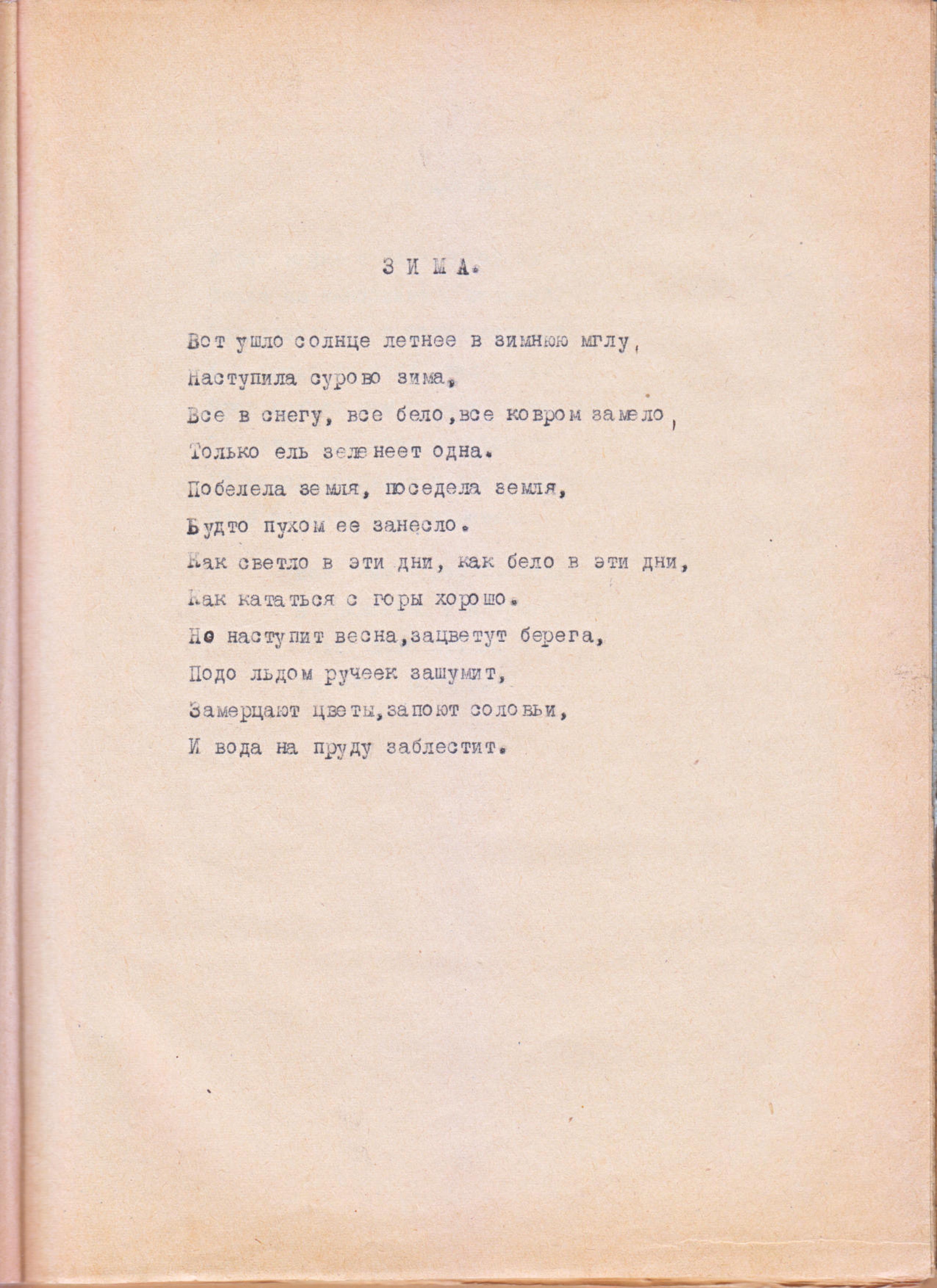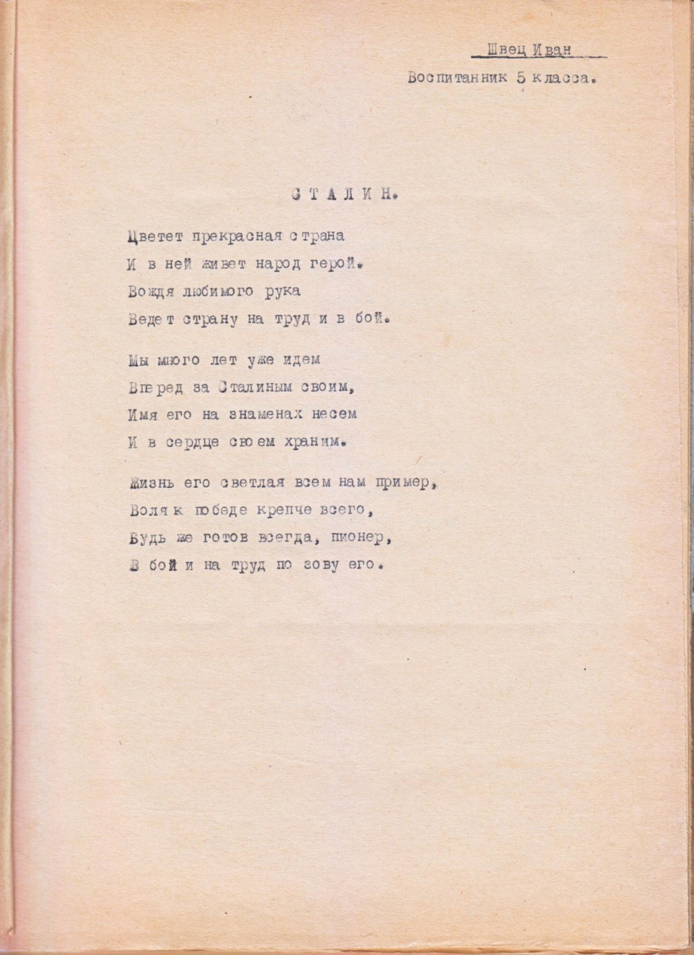 Сохранились материалы того периода: Литературно-художественный сборник воспитаников Талицкого Детского дома "Наше творчество" 1946г. и материалы постановки пьесы в 2-х действиях "Зимняя сказка".