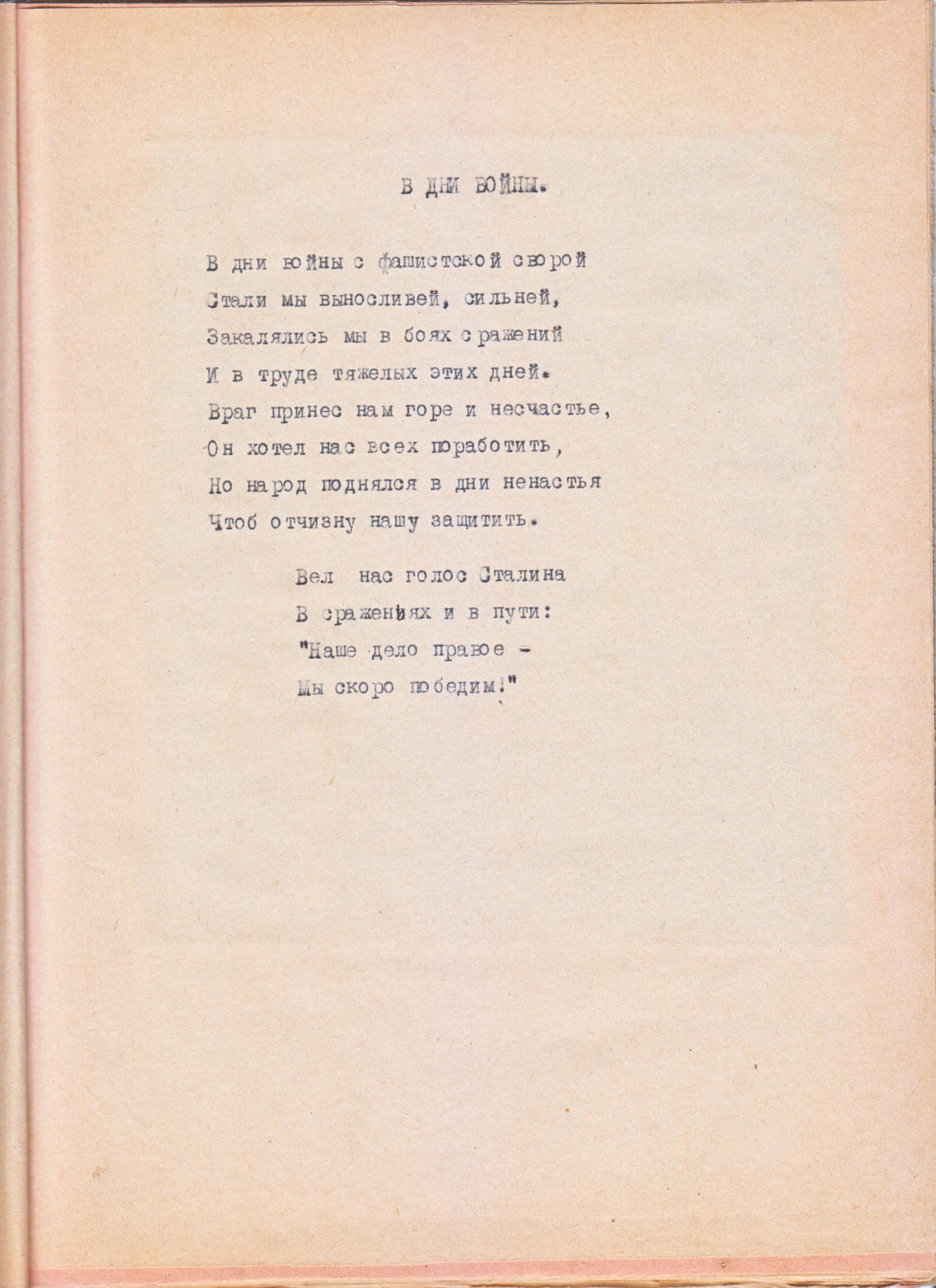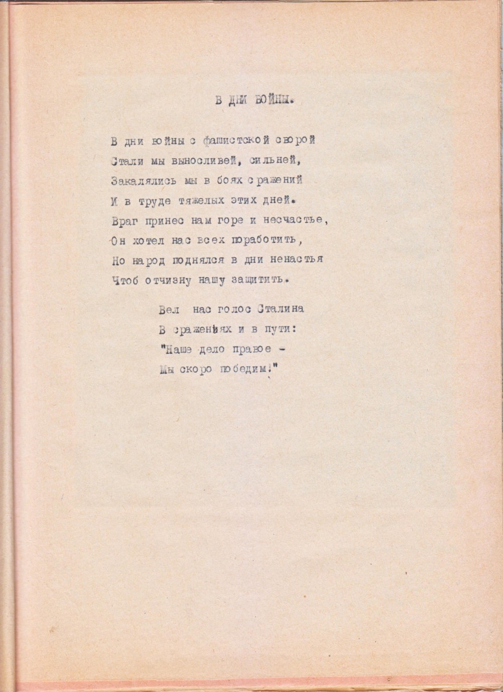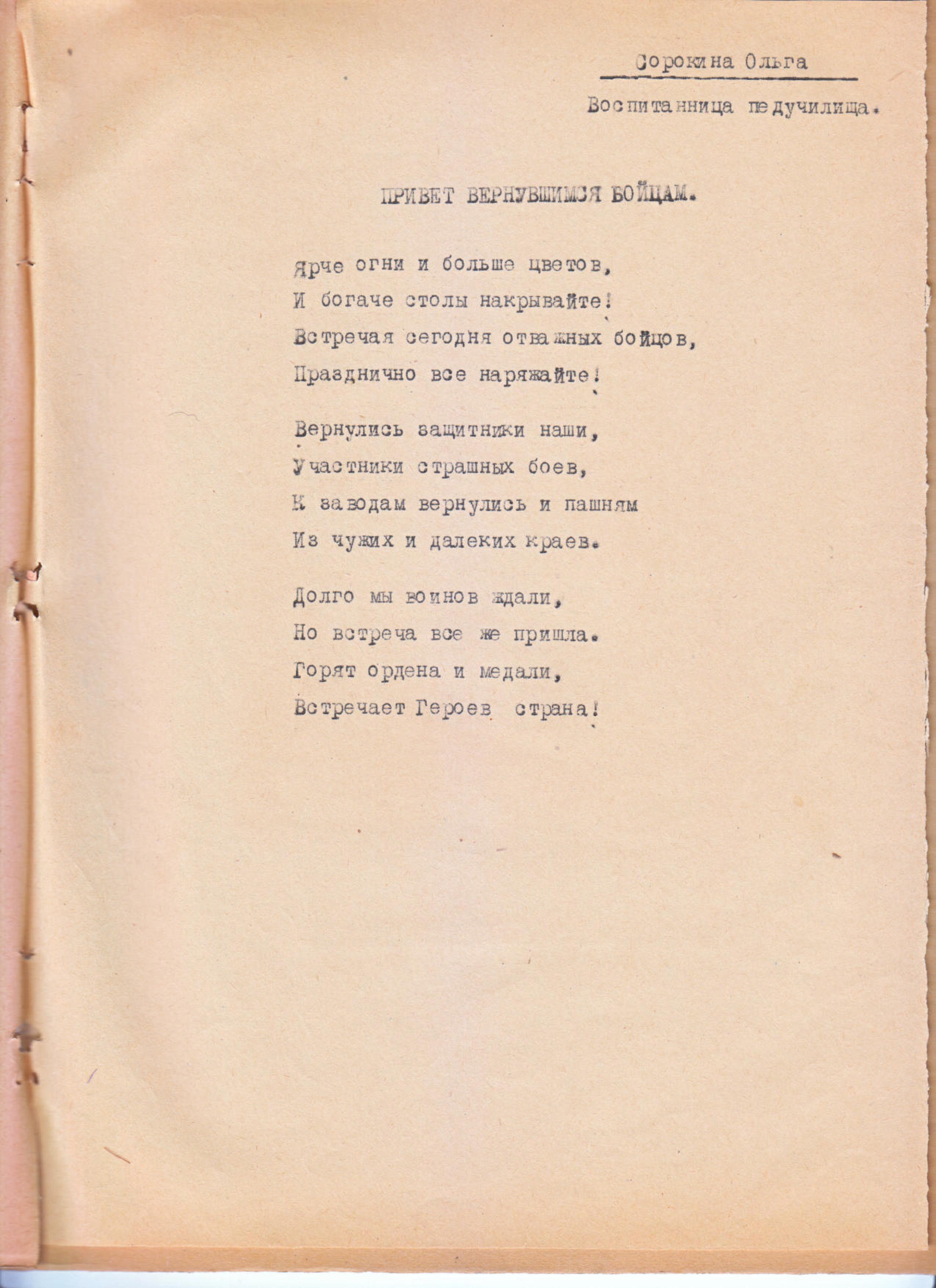 В условия войны, невзгод и лишений, когда все силы и средства тыла направлены на обеспечение фронта, педагоги стараются всеми имеющимися возможностями организовать условия проживания и быт детей.