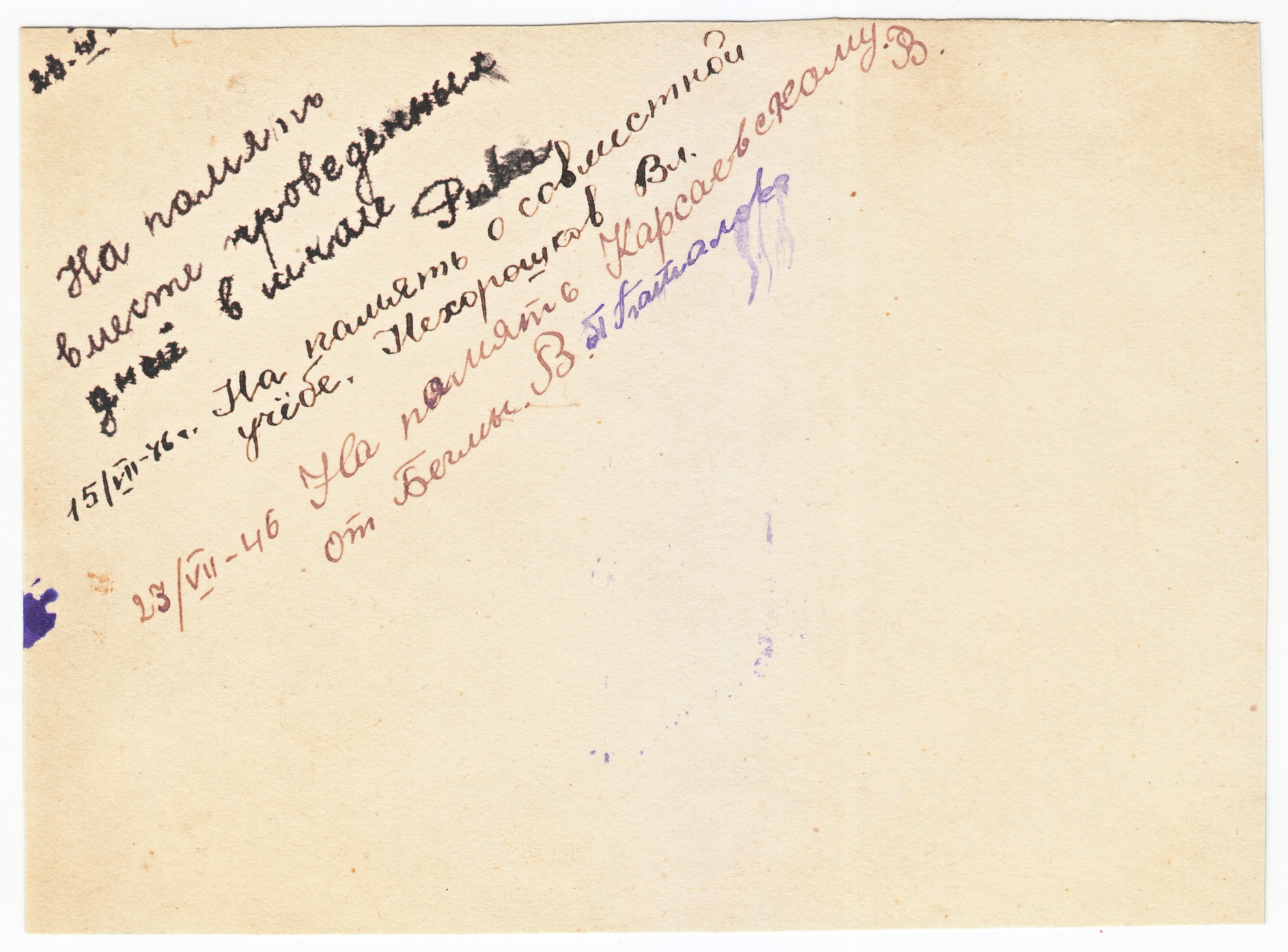 После Победы 1945 года Карсаевские - Бершадские пока остаются в Талице и продолжают там же работать и преподавать. Казалось бы, жизнь начинает постепенно налаживаться, но тяжело заболевает Александра Александровна. Неизвестна точная дата её смерти, она уходит из жизни в период 1946-1947 годов. Это последнее сохранившееся фото, на которой они все вместе.