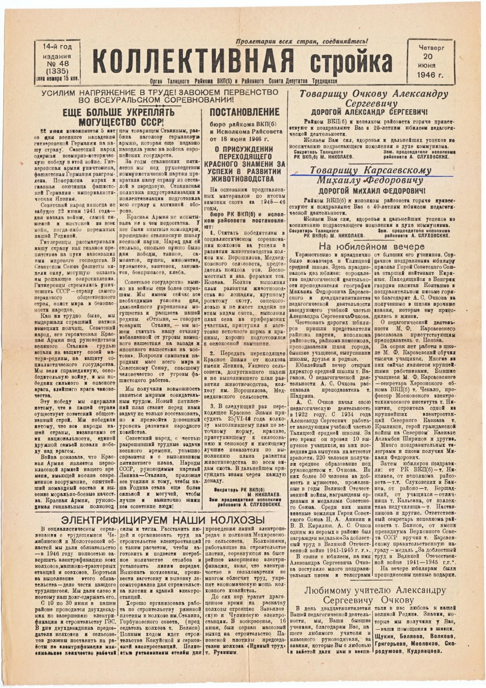 газета "Коллективная стройка", №48, 20 июня 1946г.