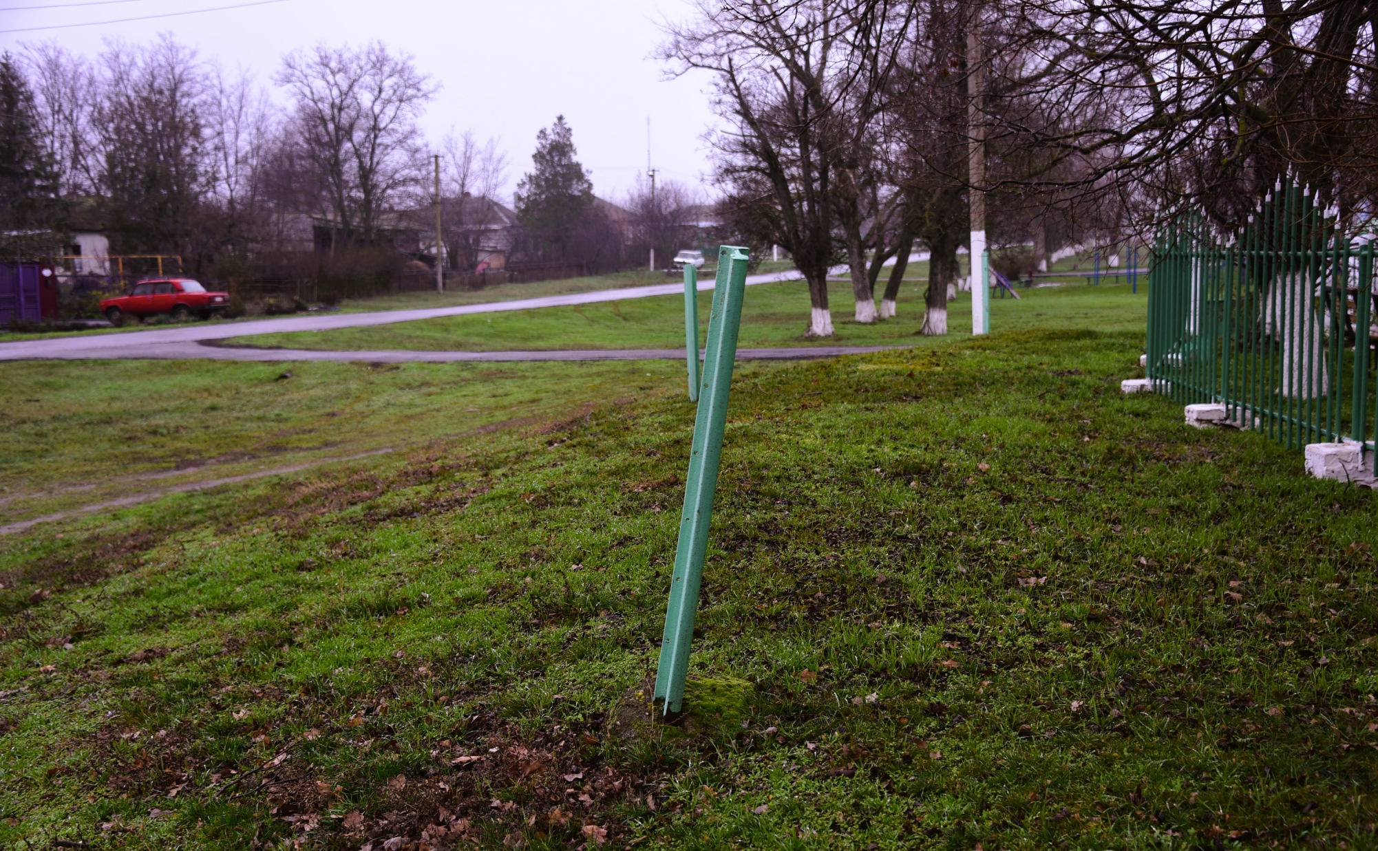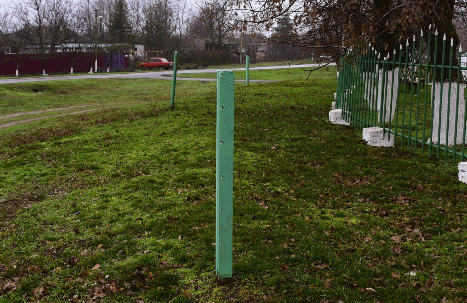 Как же я обрадовался, когда в минувшее воскресенье обнаружил, что все столбы из рельса на месте. И даже аккуратно покрашены.