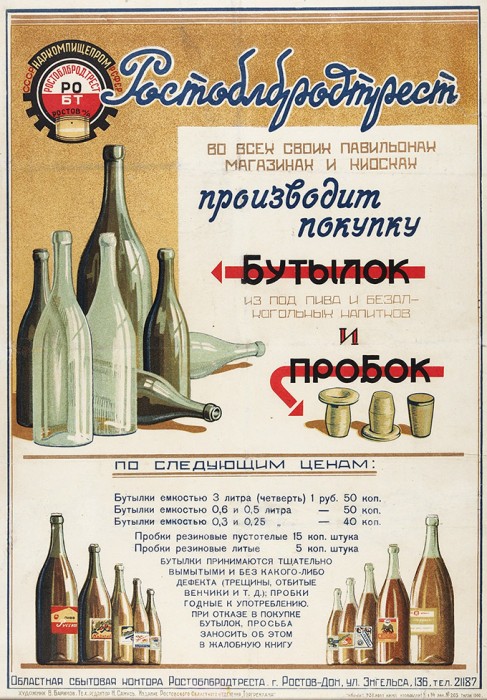 Довоенный плакат. Заметим, что тару принимали в торговых ларьках:
