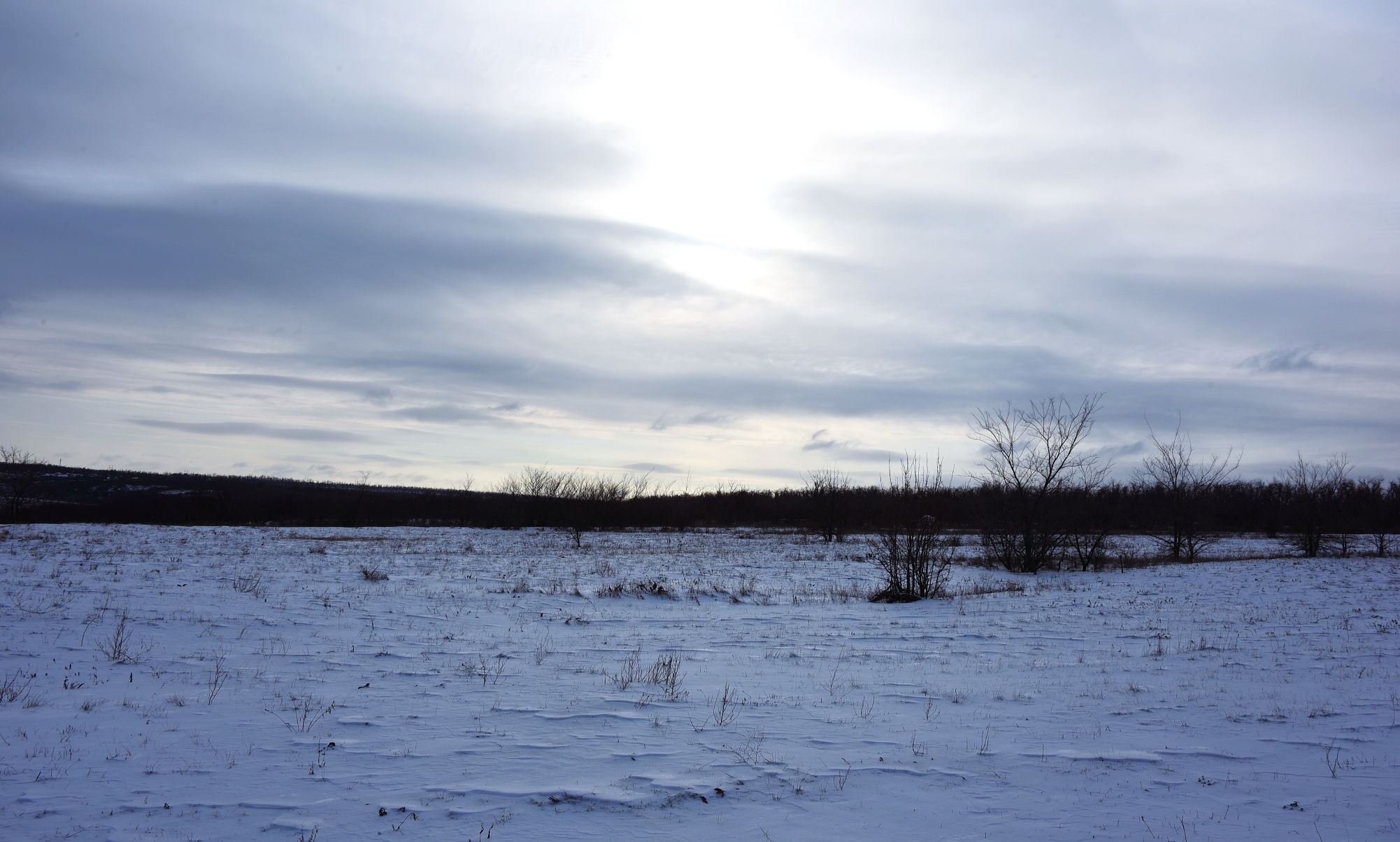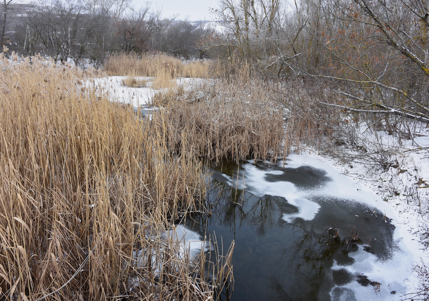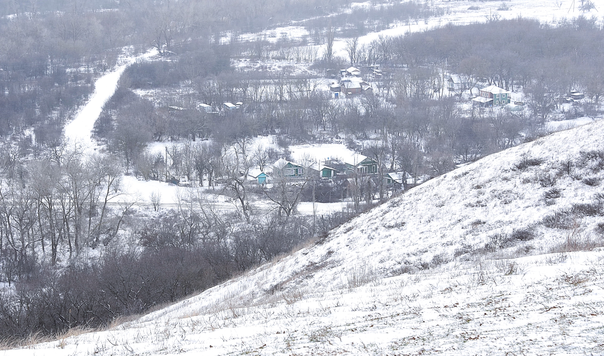 Выпал снег и ударил мороз, что редкость в наших краях. Проехал привычным маршрутом, от хутора Пухляковского до станицы Нижнекундрюченской. Новых чудес на этом маршруте не искал, а сравнивал летние, хорошо знакомые всем «рекламные» виды с зимними, сдержанными, чёрно-белыми.