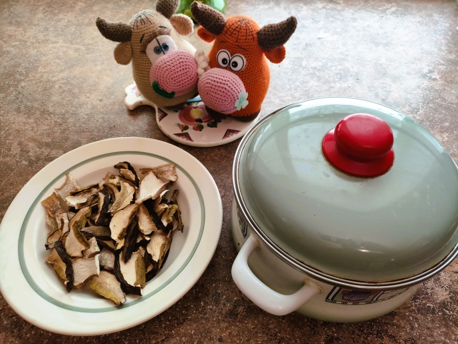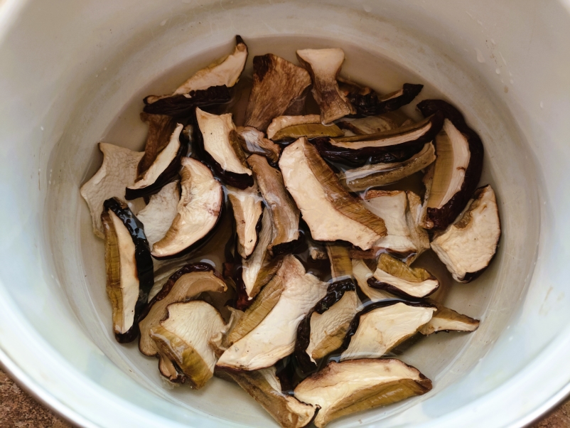 Параллельно, добрую жменю сушеных белых грибов поставил замачиваться в холодной воде.