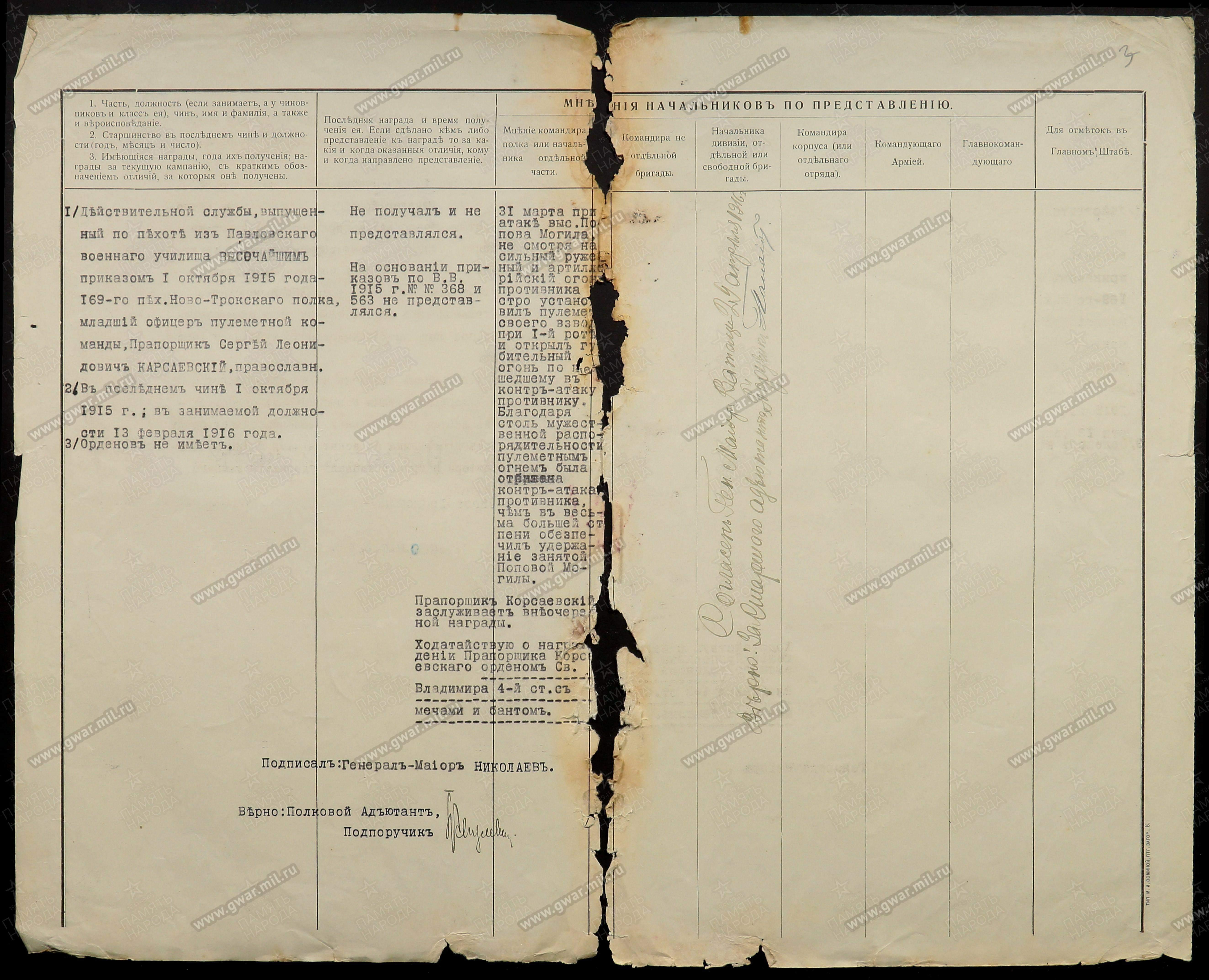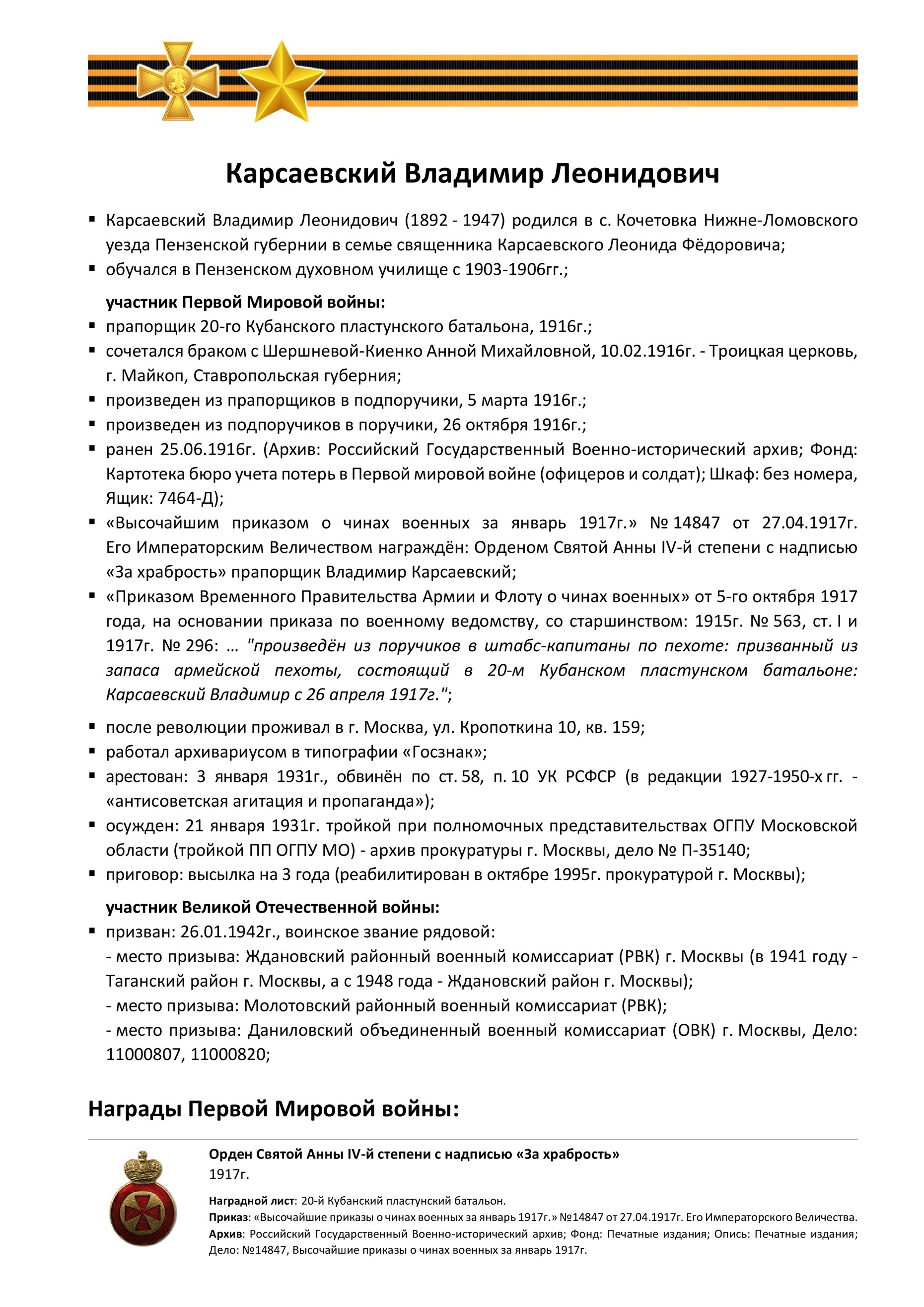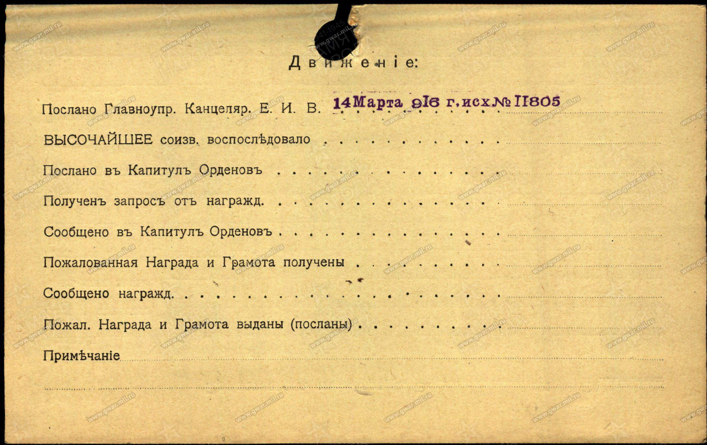 наградные документы, Орден Святой Анны III-й степени, 1916г. | |||||