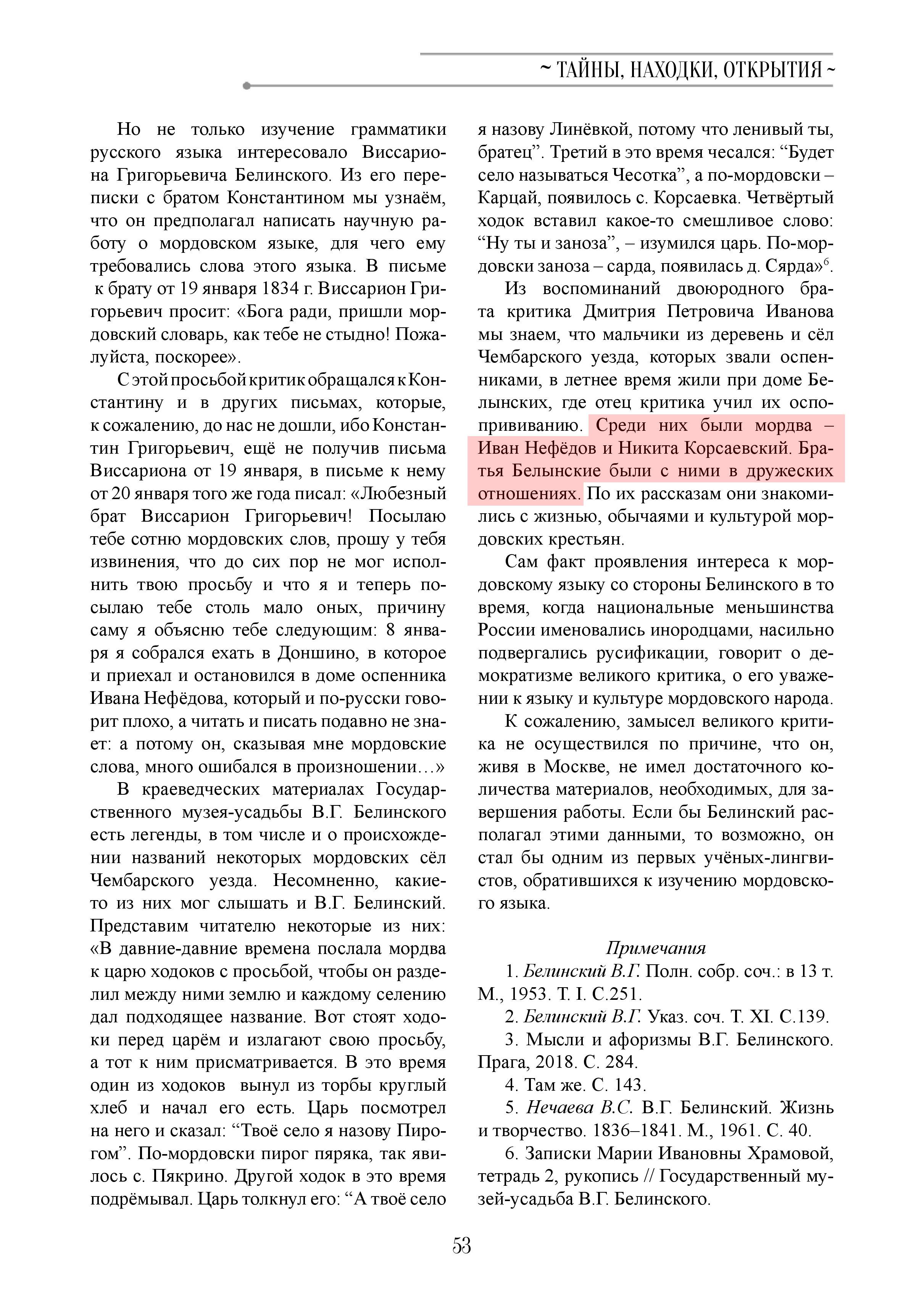 Посылая тебе с сотню мордовских слов, прошу у тебя в том извинения, что я до сих пор не мог исполнить твою просьбу и что я и теперь посылаю тебе толь мало оных, причину сему я объясню тебе следующим: 8 января я собрался ехать в Донщино, в которое и приехал и остановился в доме оспенника1 Ивана Нефедова, который по-русски говорит плохо, а читать и писать и подавно не знает; а потому он, сказывая мне мордовские слова, много ошибался в произнесении, по чему самому хотя и написал было сотни 4 с лишком слов, но в прошедший четверг приезжал на базар и приходил к нам известный тебе Карсаевский Никита, который учился у меня писать, которому я, показав означенные слова, просил его по прочтении поправить ошибки, коих он хотя несколько и исправил, но всех не мог по той причине, что его дожидался отец на базаре. Вот мое оправдание самое справедливое, и ежели я хотя в одном слове солгал, то не будь я твой брат. Довольно ли этого? Мне и самому много огорчительно то, что я до сих пор не могу исполнить твоей просьбы со всею аккуратностью, как ты мне писал. Я непременно постараюсь исполнить в скором времени."