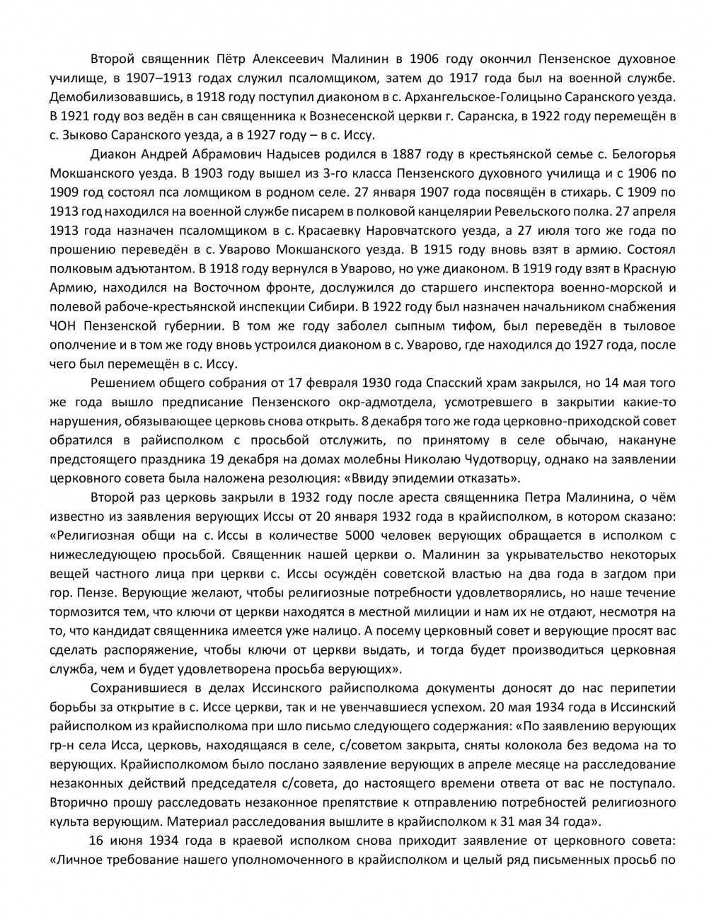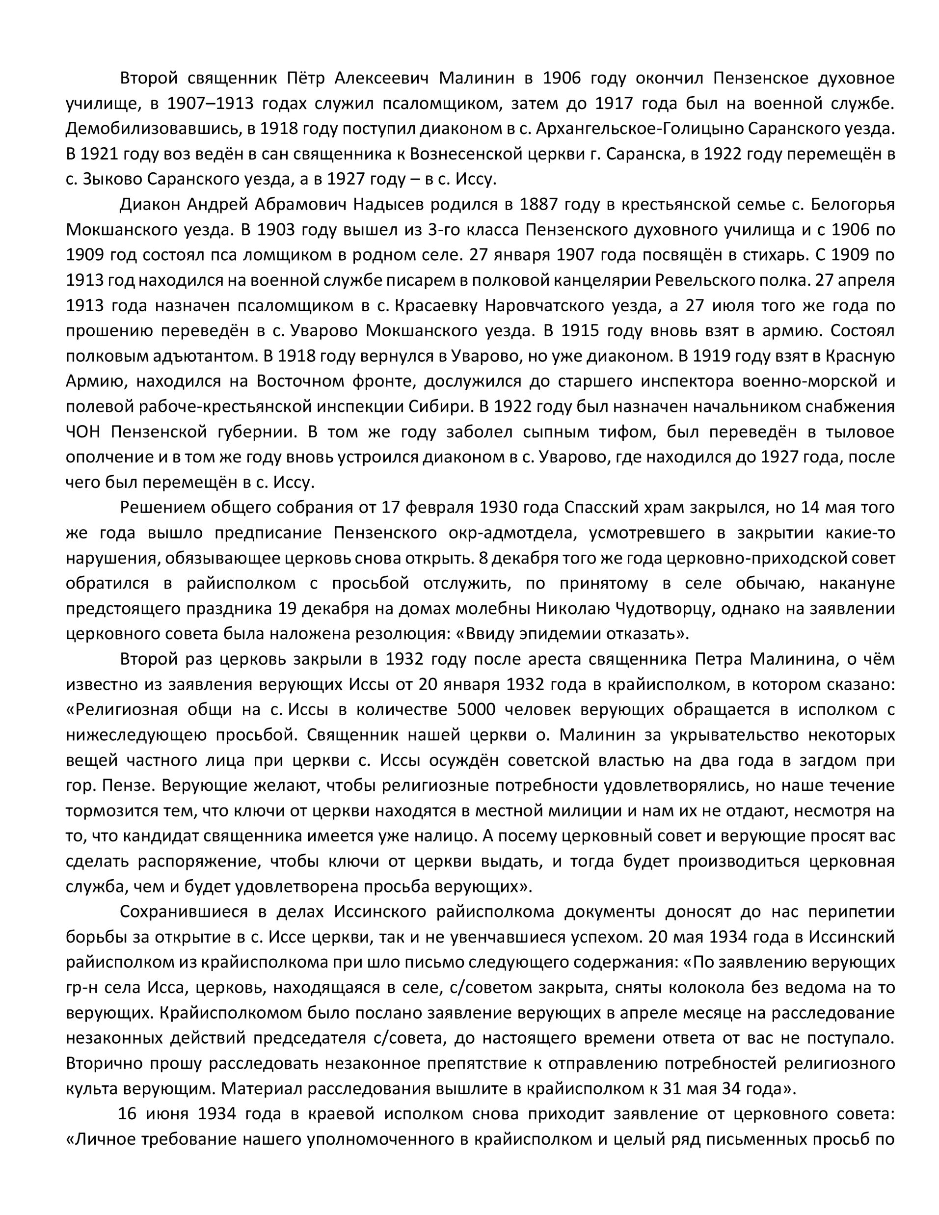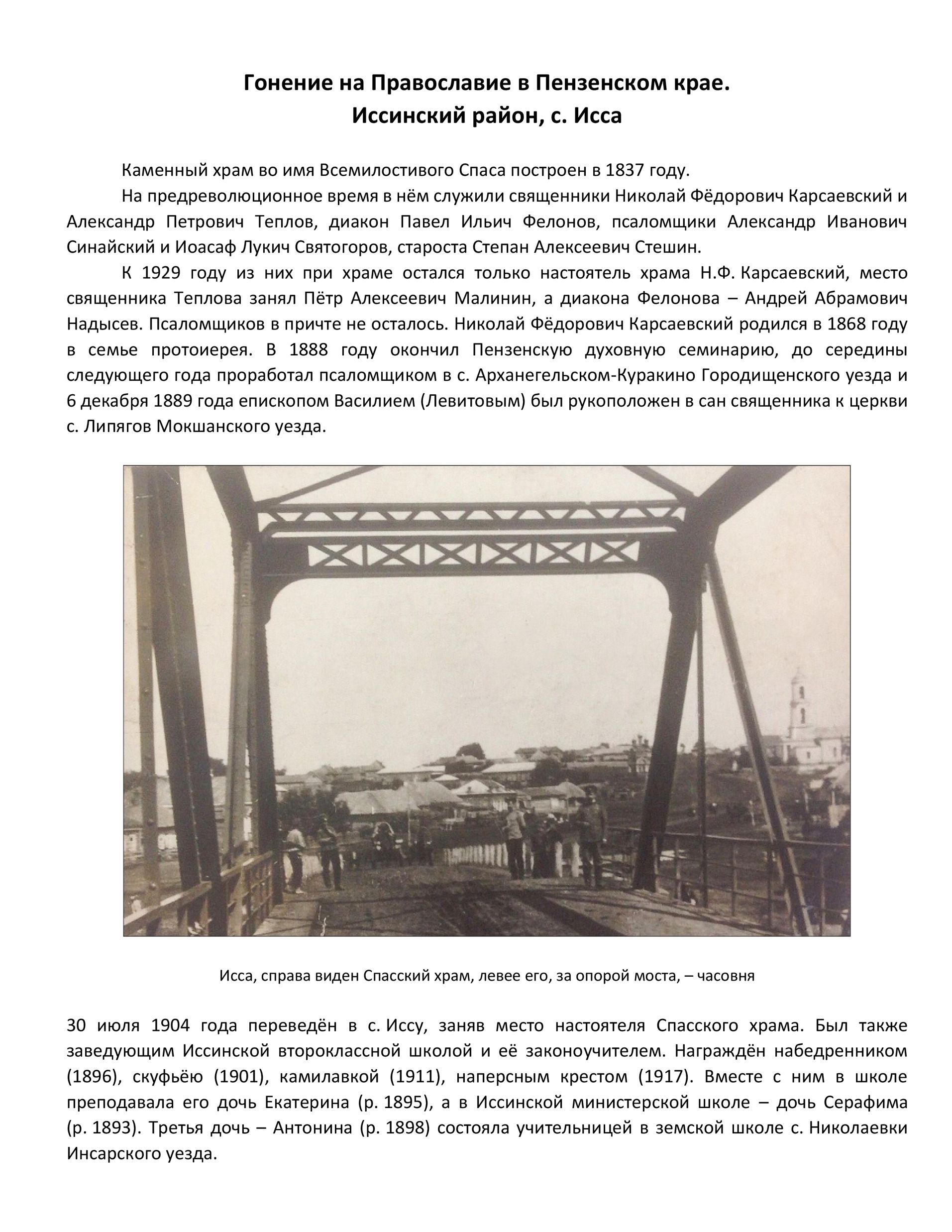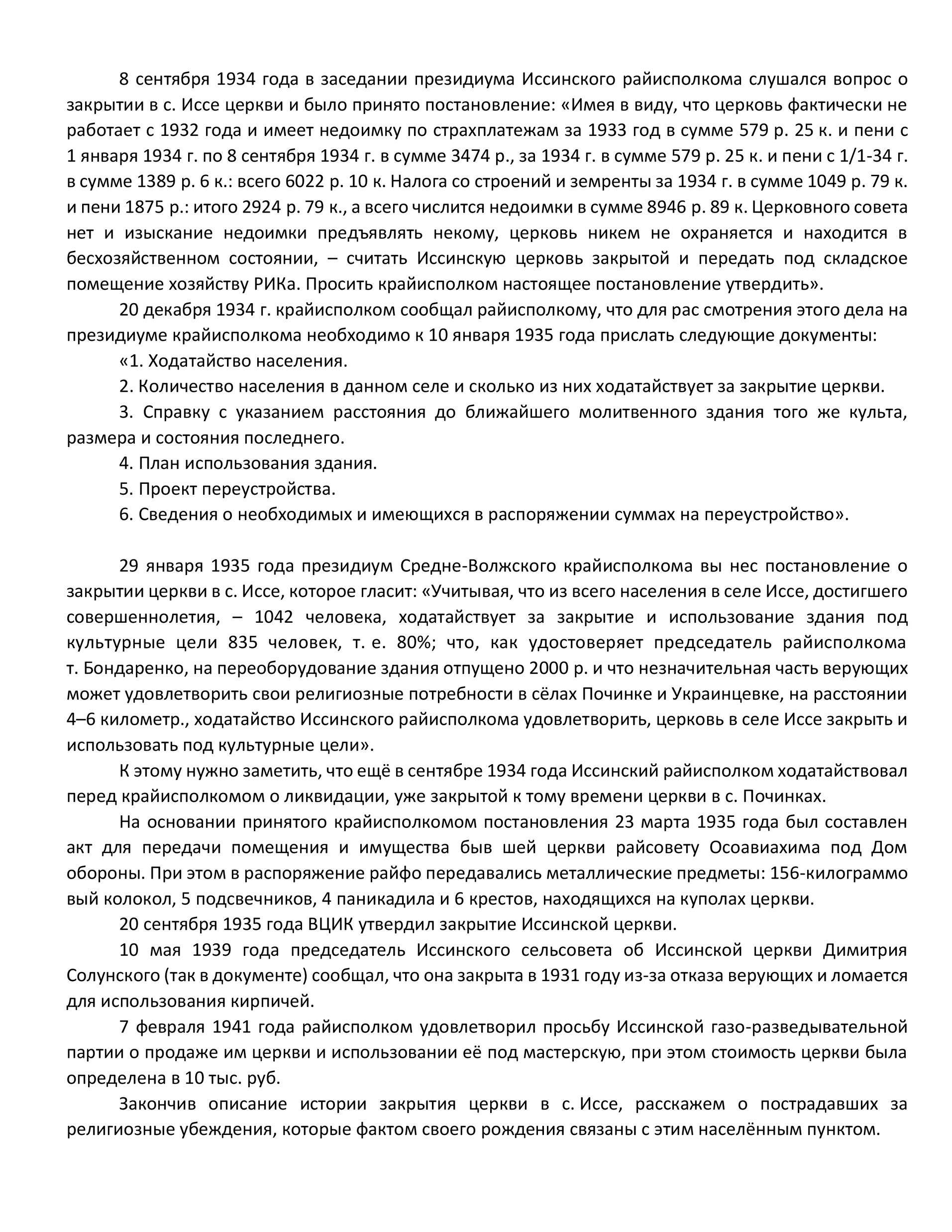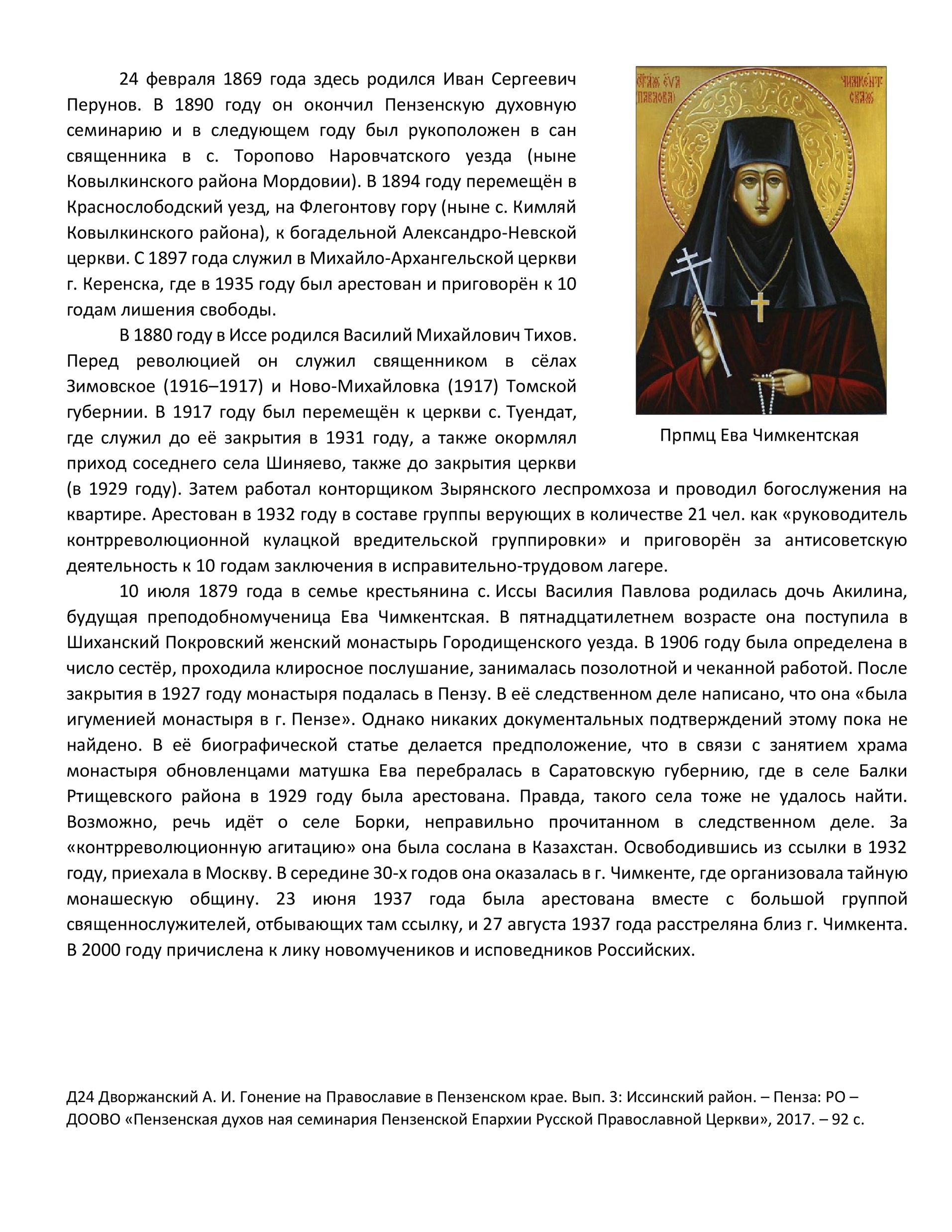 | из книги Дворжанского А. И. «Гонение на Православие в Пензенском крае: Иссинский район» | ||||||||||