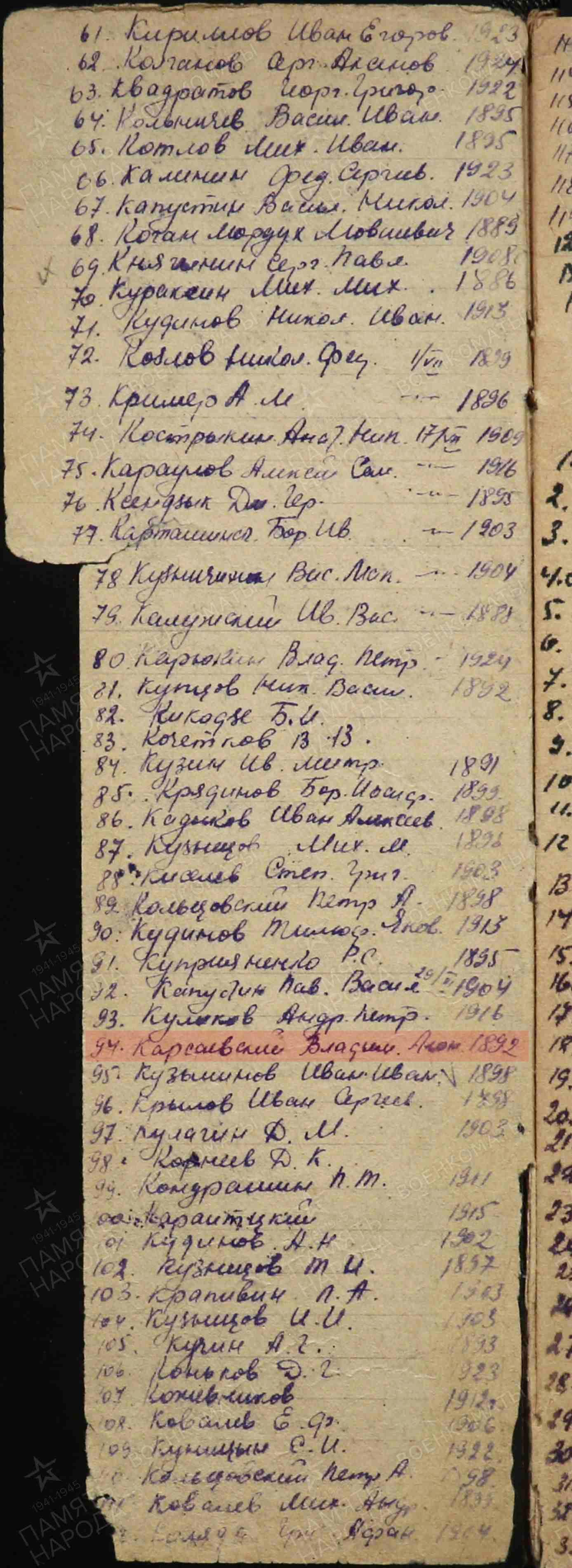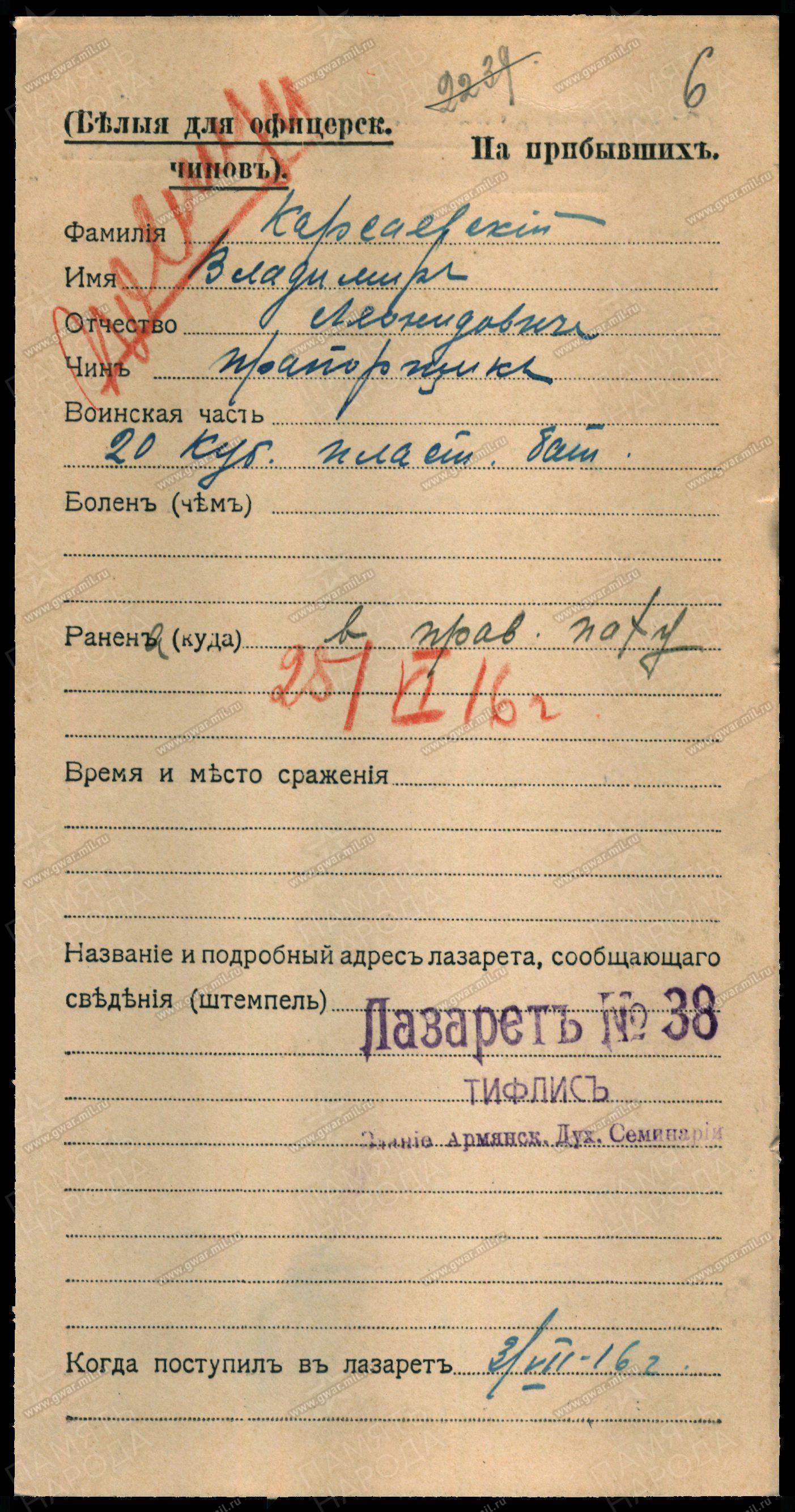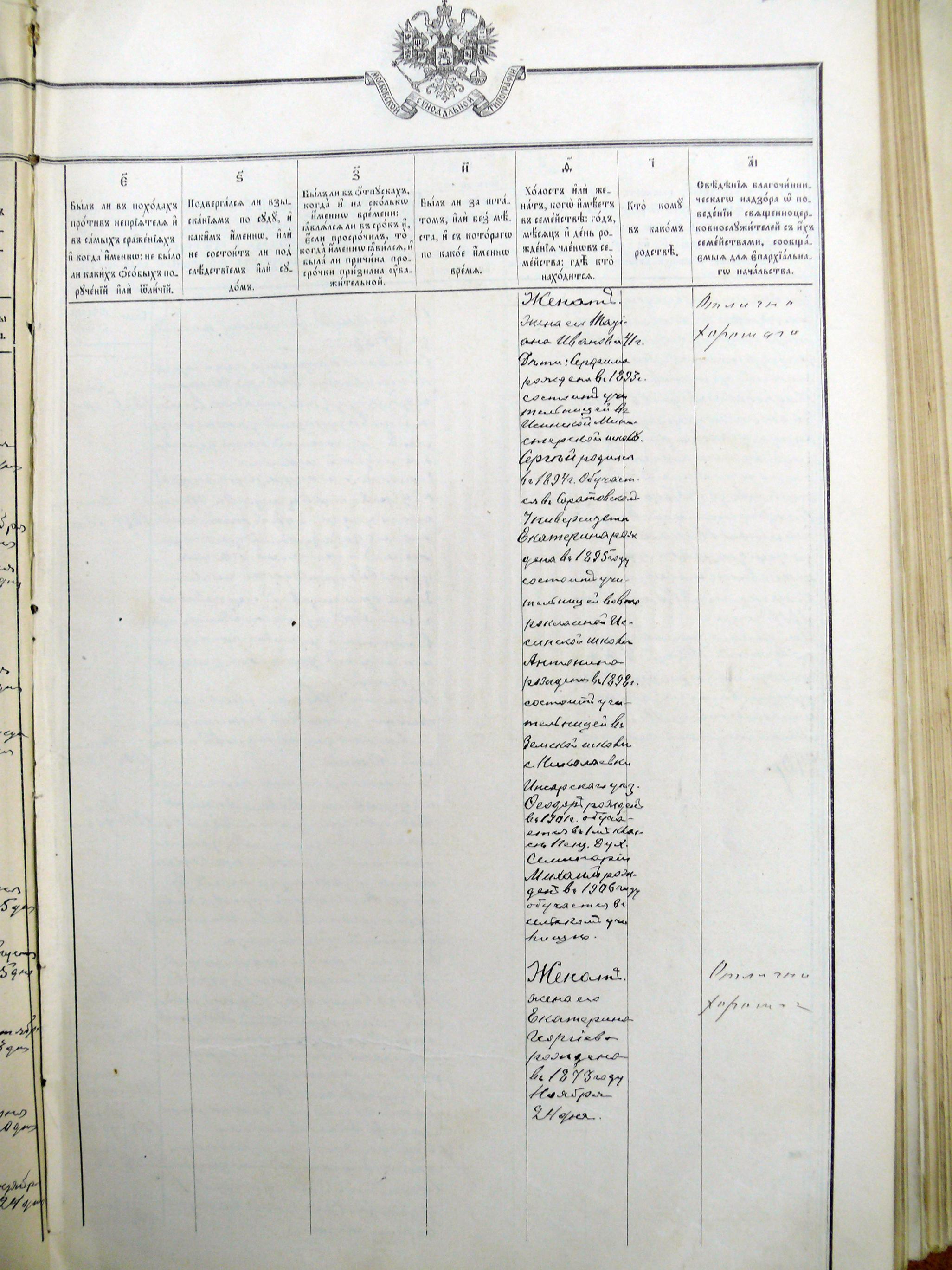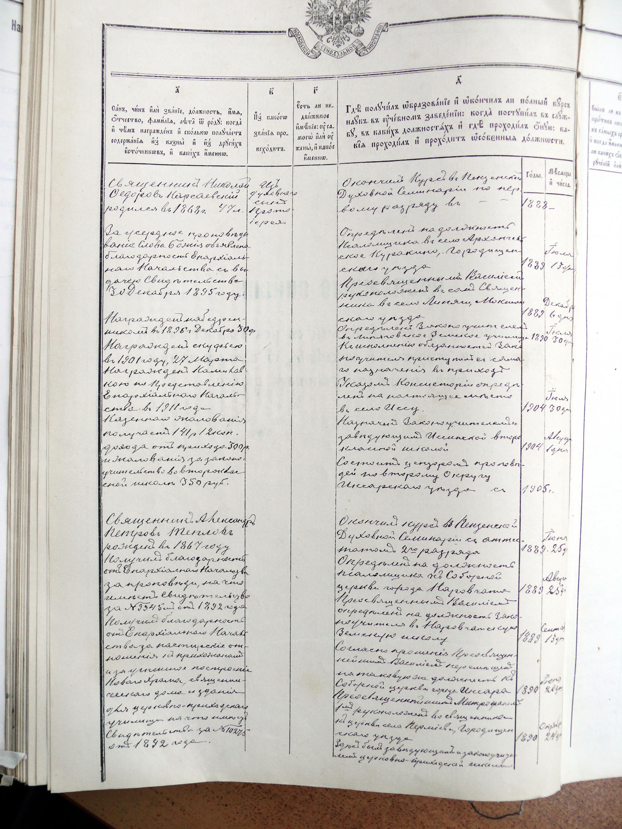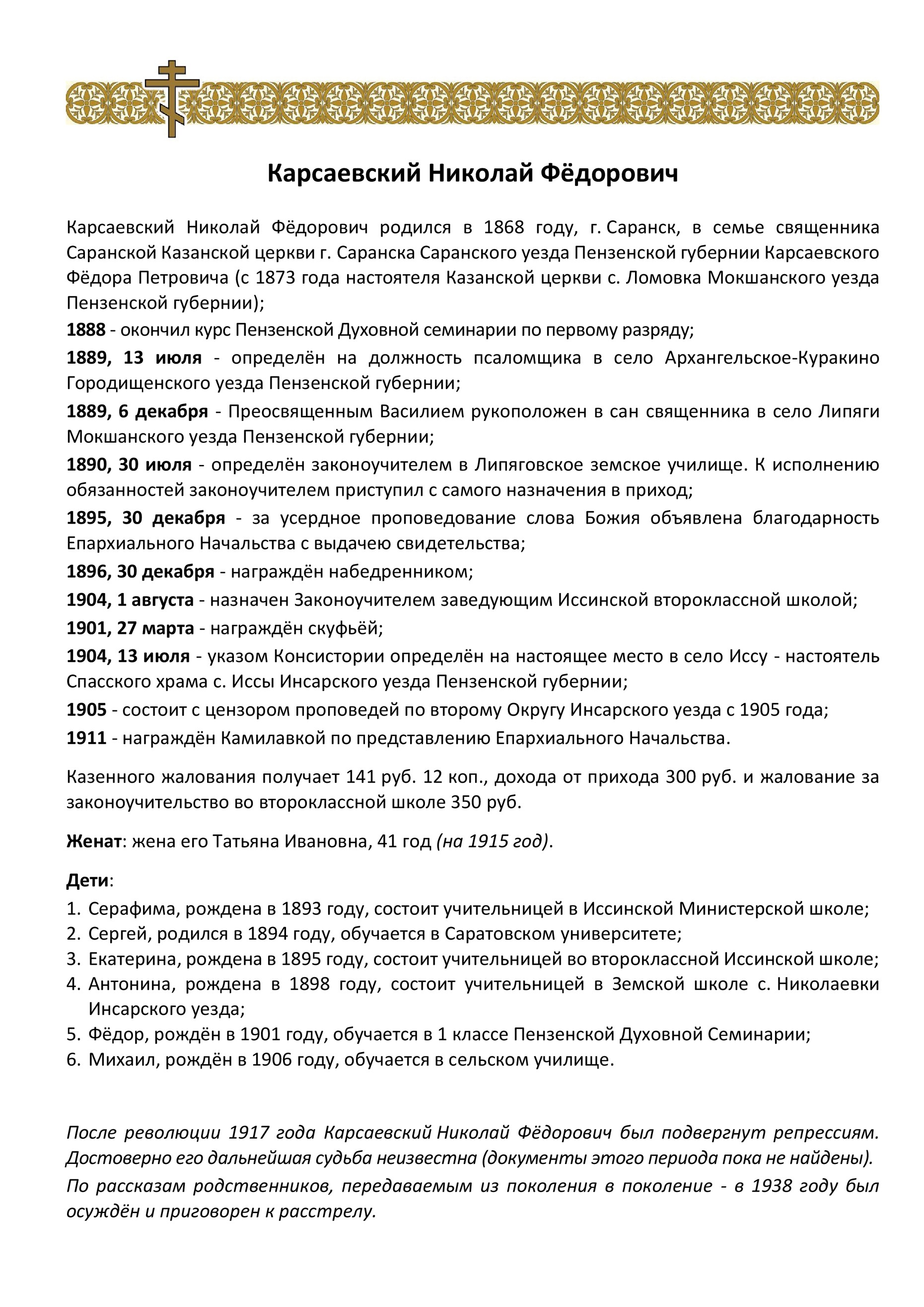 | краткая биография | Клировые ведомости за 1915 год | Карсаевский Николай Фёдорович | ||||||||