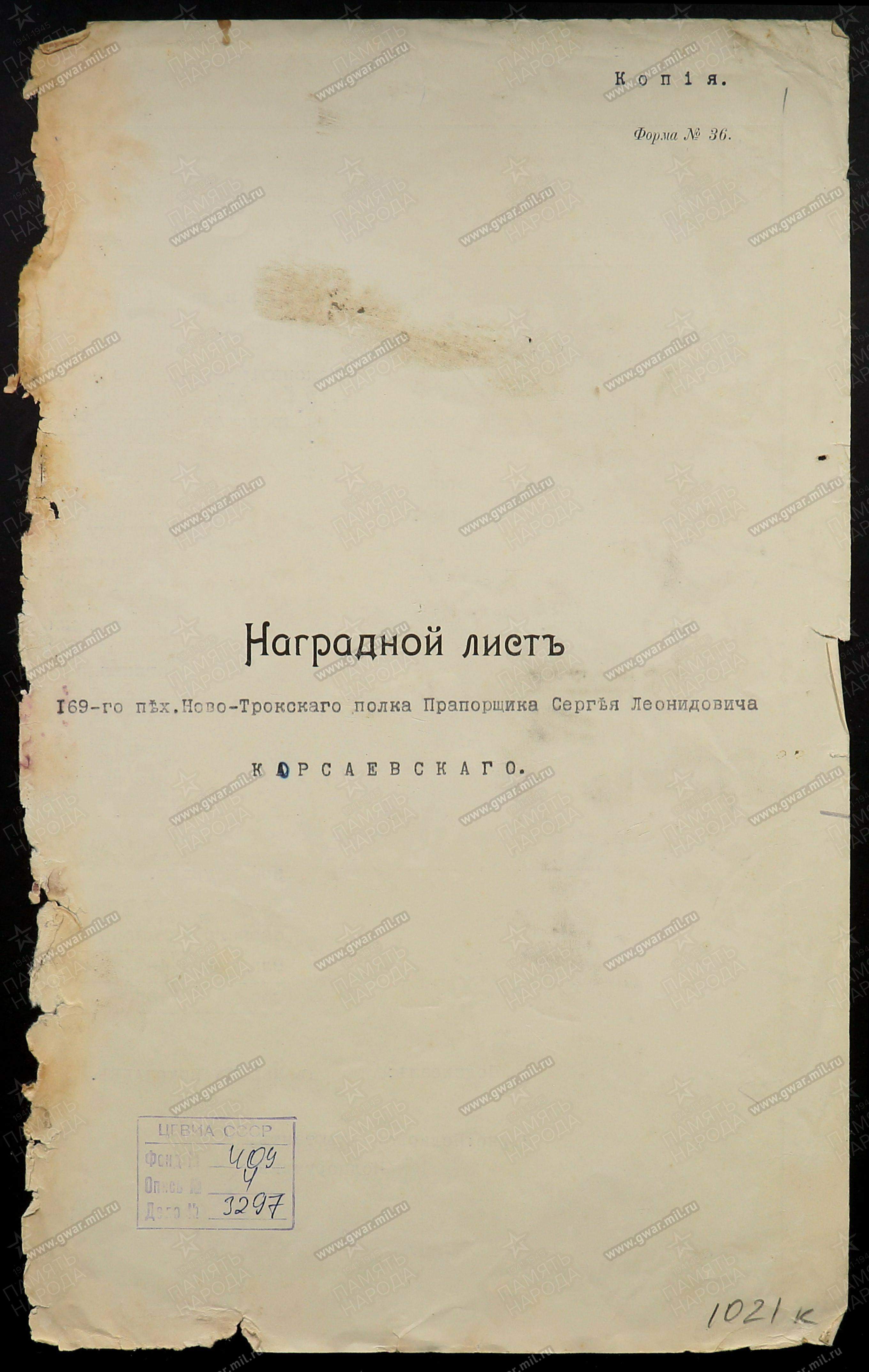 - материалы "Центрального архива Министерства обороны РФ";