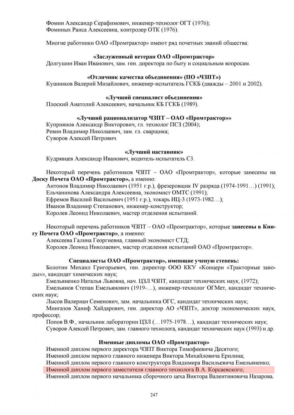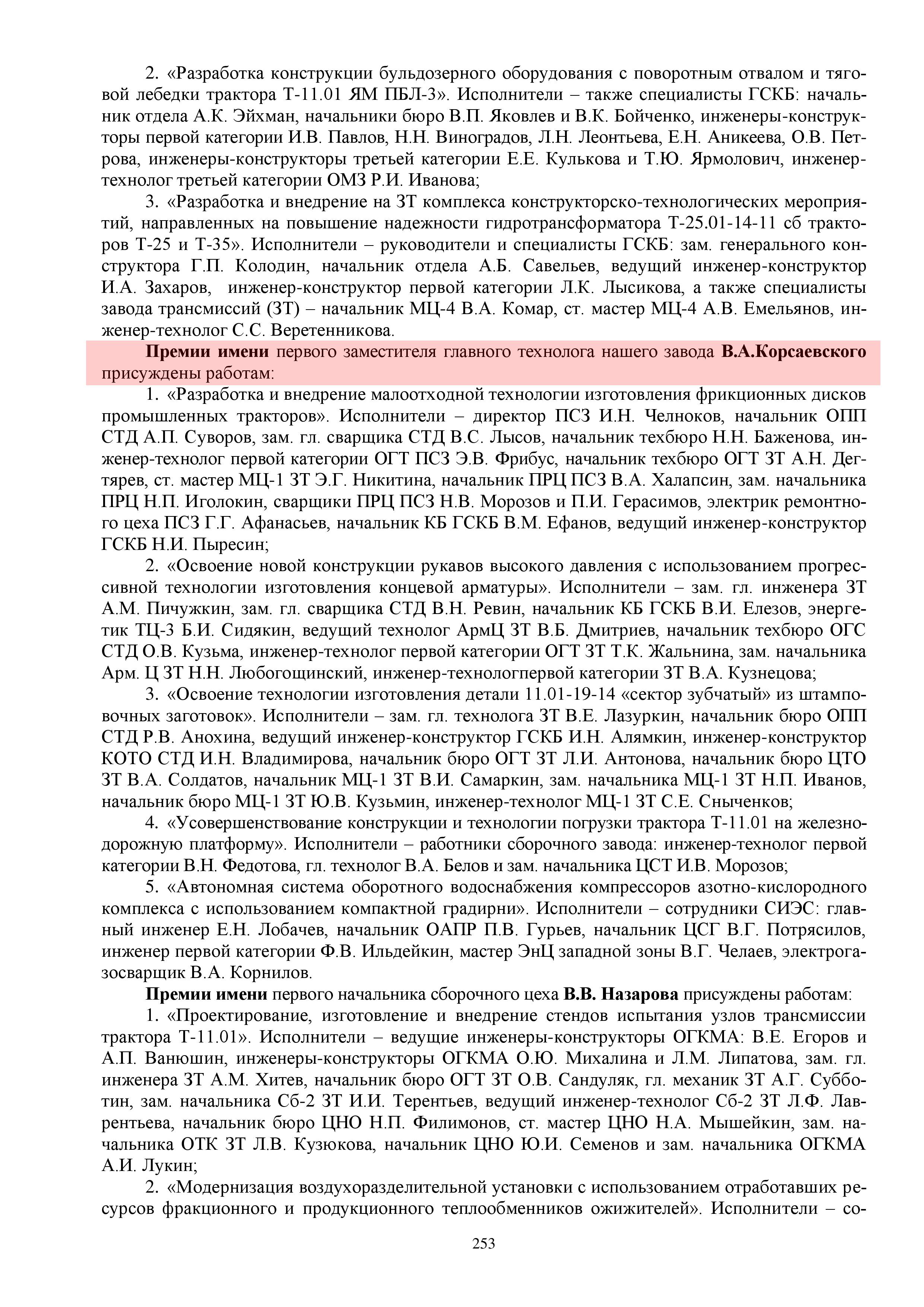 С 1988 года на заводе учреждена премия имени первого заместителя главного технолога завода Карсаевского Виктора Александровича за лучшую технологическую разработку. Сейчас это предприятие ОАО «ПРОМТРАКТОР» (Летопись Чебоксарского завода промышленных тракторов (ЧЗПТ) – ОАО «ПРОМТРАКТОР» 1975-2020).
